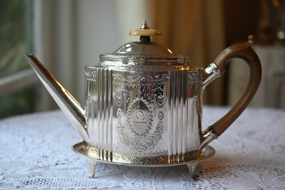 美術館に飾ってあってもおかしくない、オリジナルのティーポットスタンドが揃った、稀少なお品です。