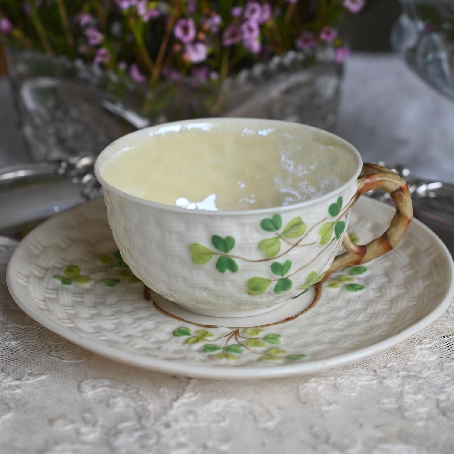 希少・ベリーク・ファーストブラックマーク・シャムロック・クローバーのティーカップ&ソーサー (送料込)