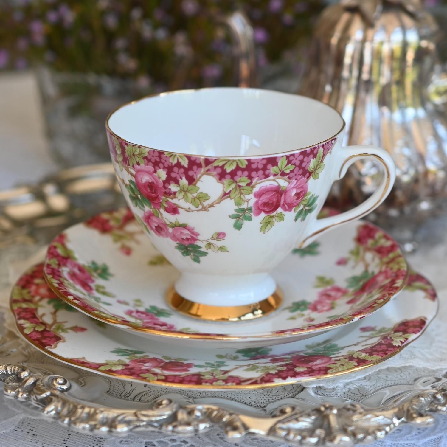 1940年代 ロイヤルアルバート トレリス ピンク色の格子模様のトリオ 単品 (送料込)