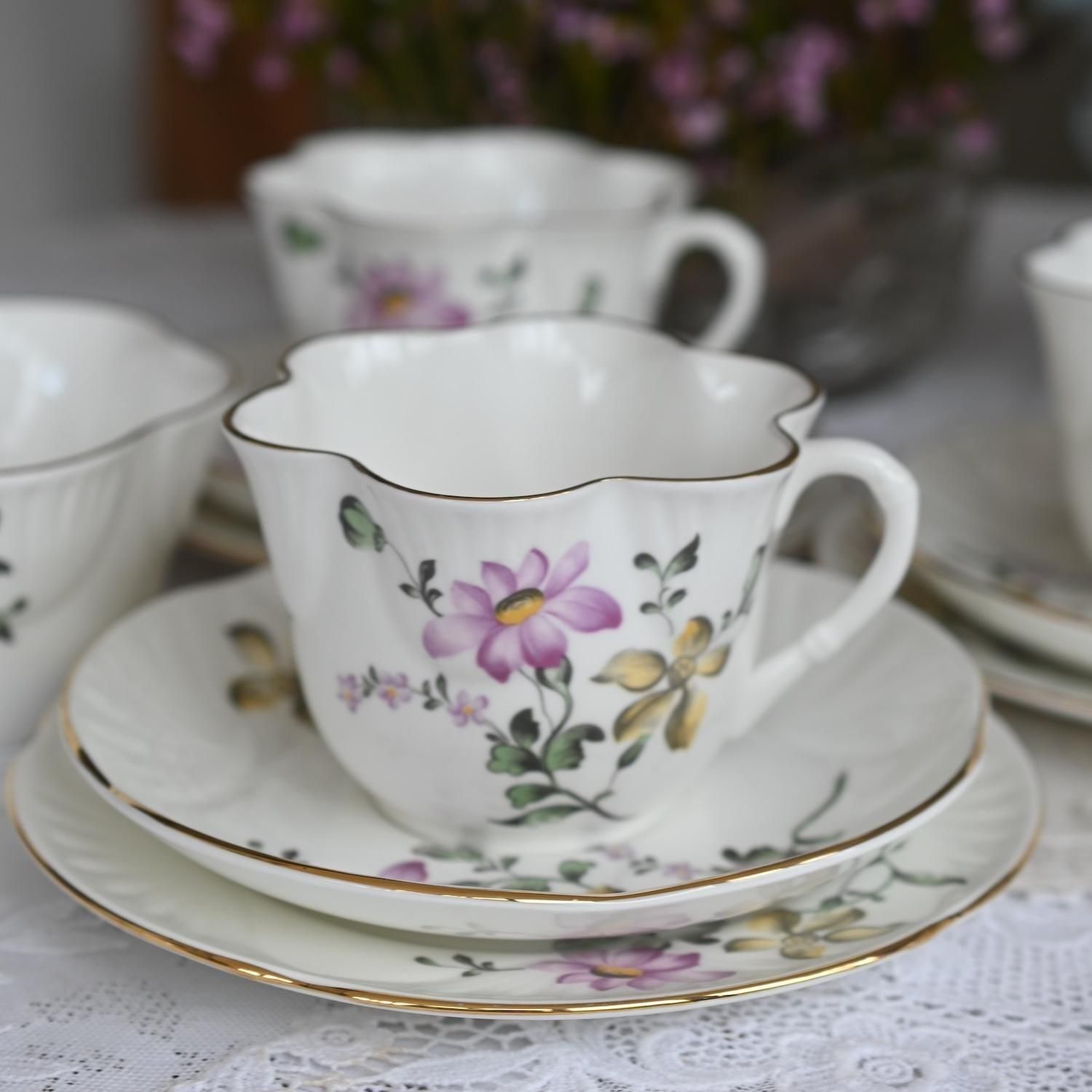 (お買い得)1900年初期 ふんわり優しい雰囲気のティーカップトリオ (送料込)