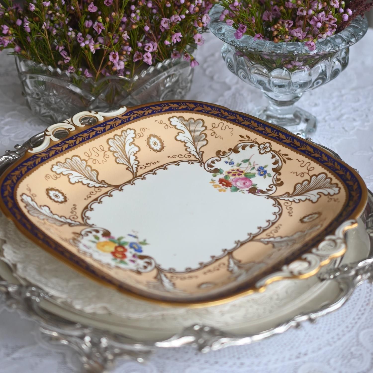1910年代 コウルドン・アプリコット色と金彩が美しいサンドイッチプレート (送料込)
