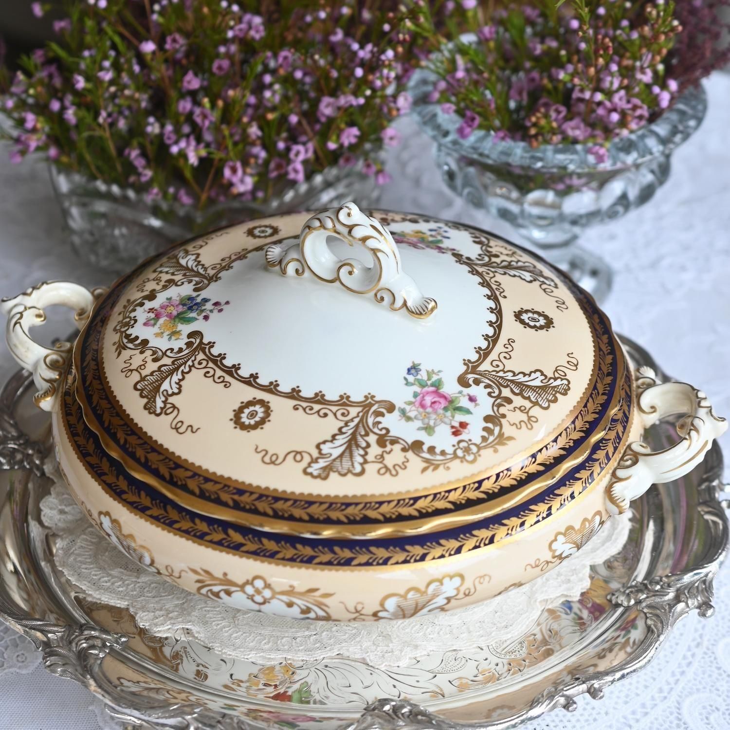 1910年代 コウルドン・アプリコット色と金彩が美しい蓋付きトリーン (送料込)