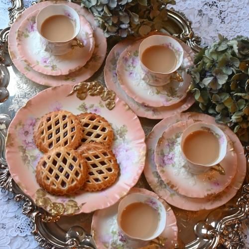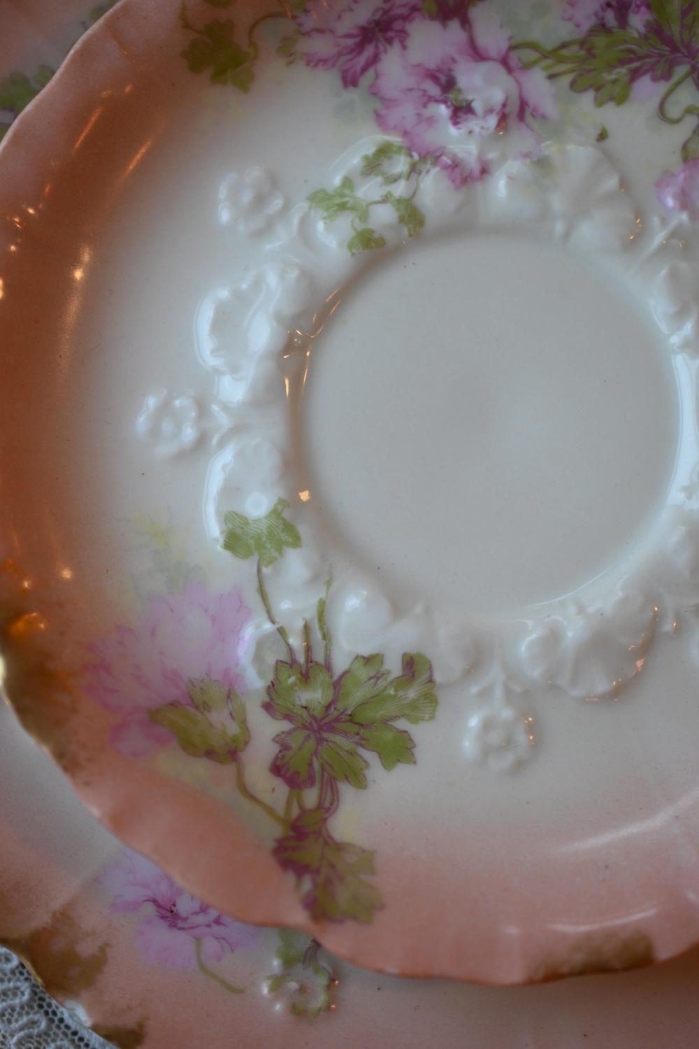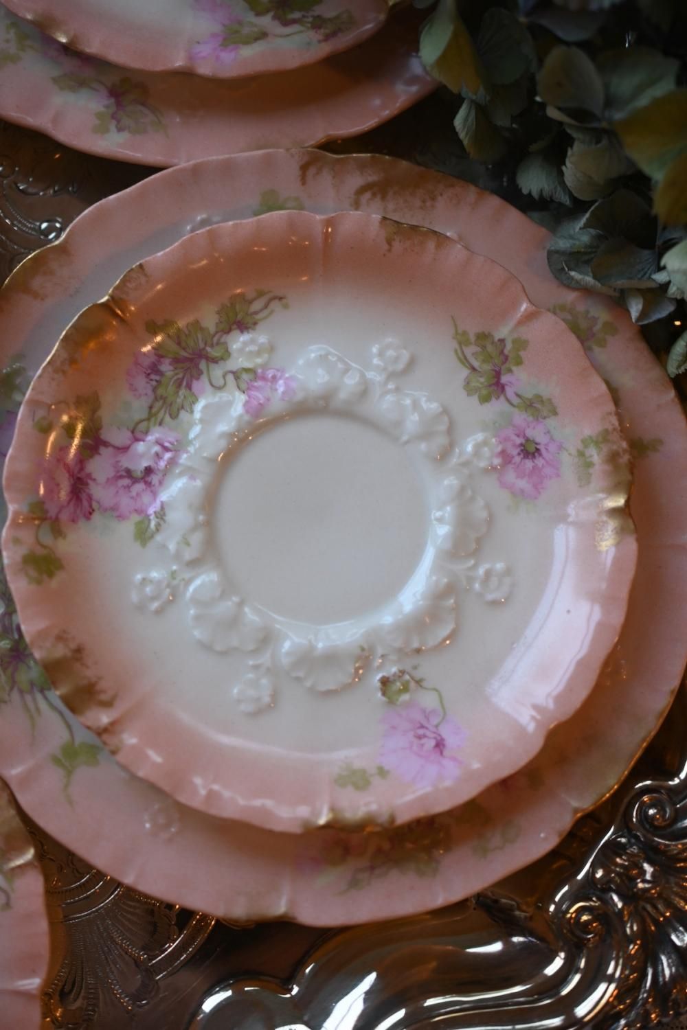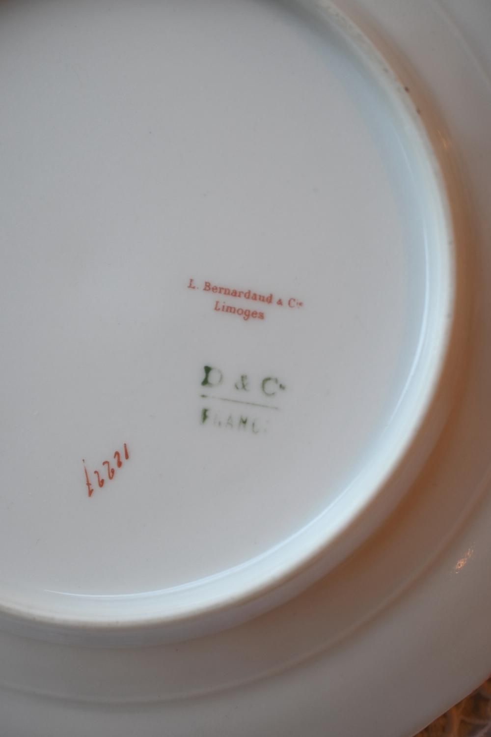リモージュにはたくさんの陶磁器工房がありましたが、こちらのお品は、D&CO というマークのついたお品になり、作られた年代なども分かります。1910年代に作られたお品です。