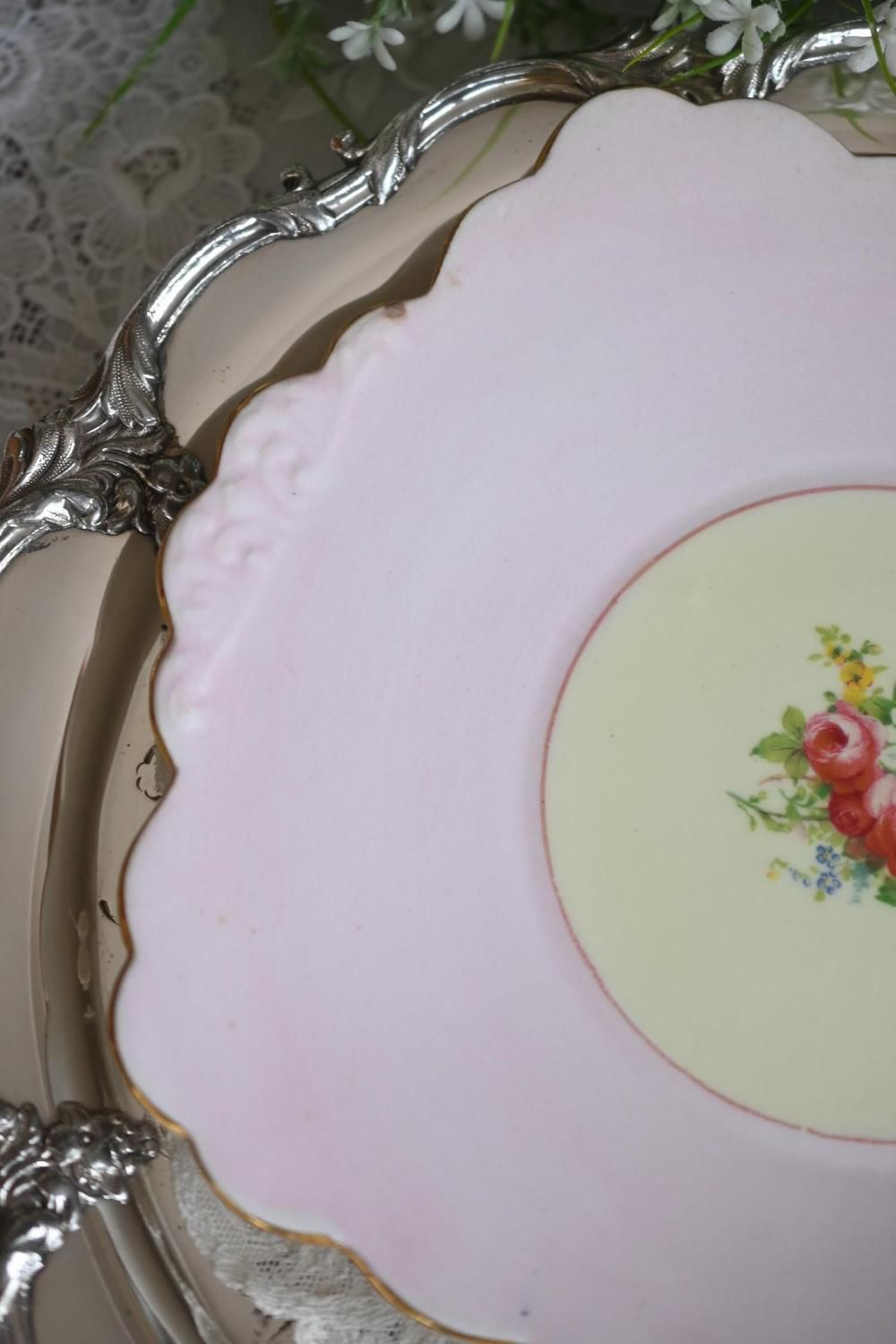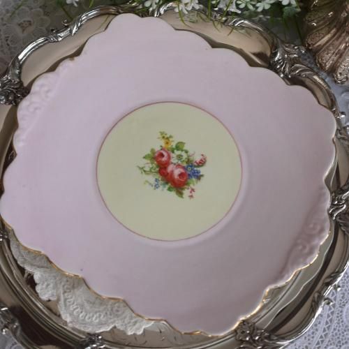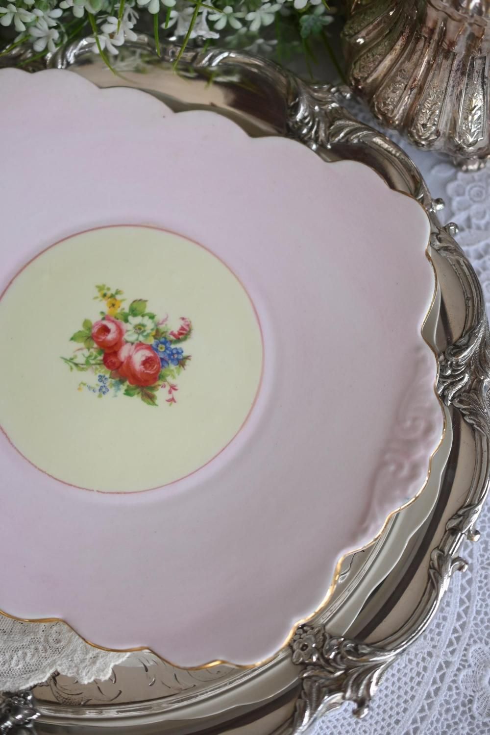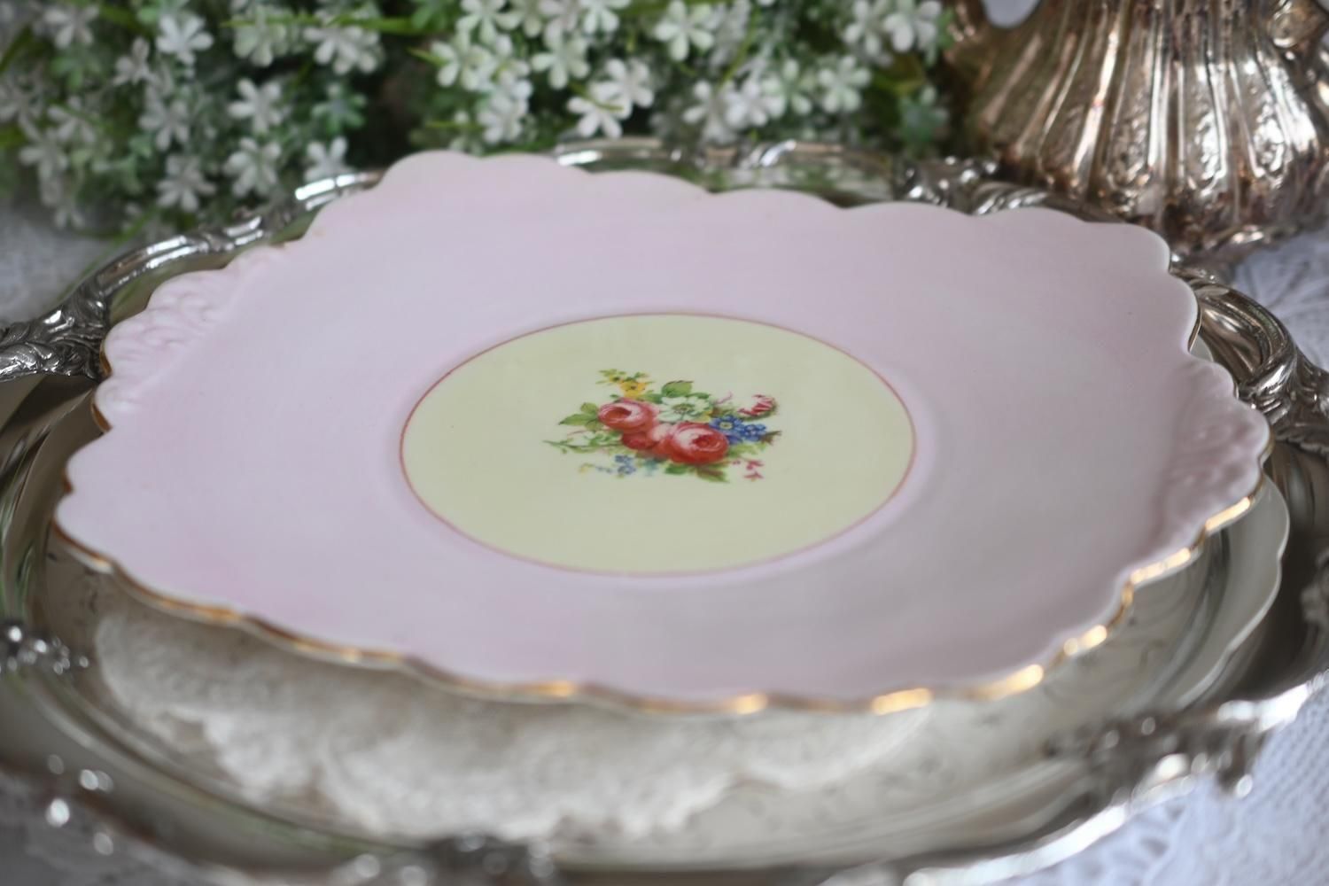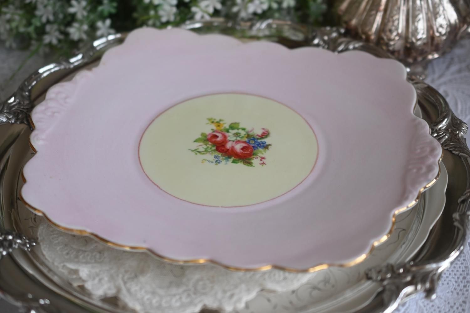 フォリー 1950年代 パステルピンク バラ模様 サンドイッチプレート (送料込)