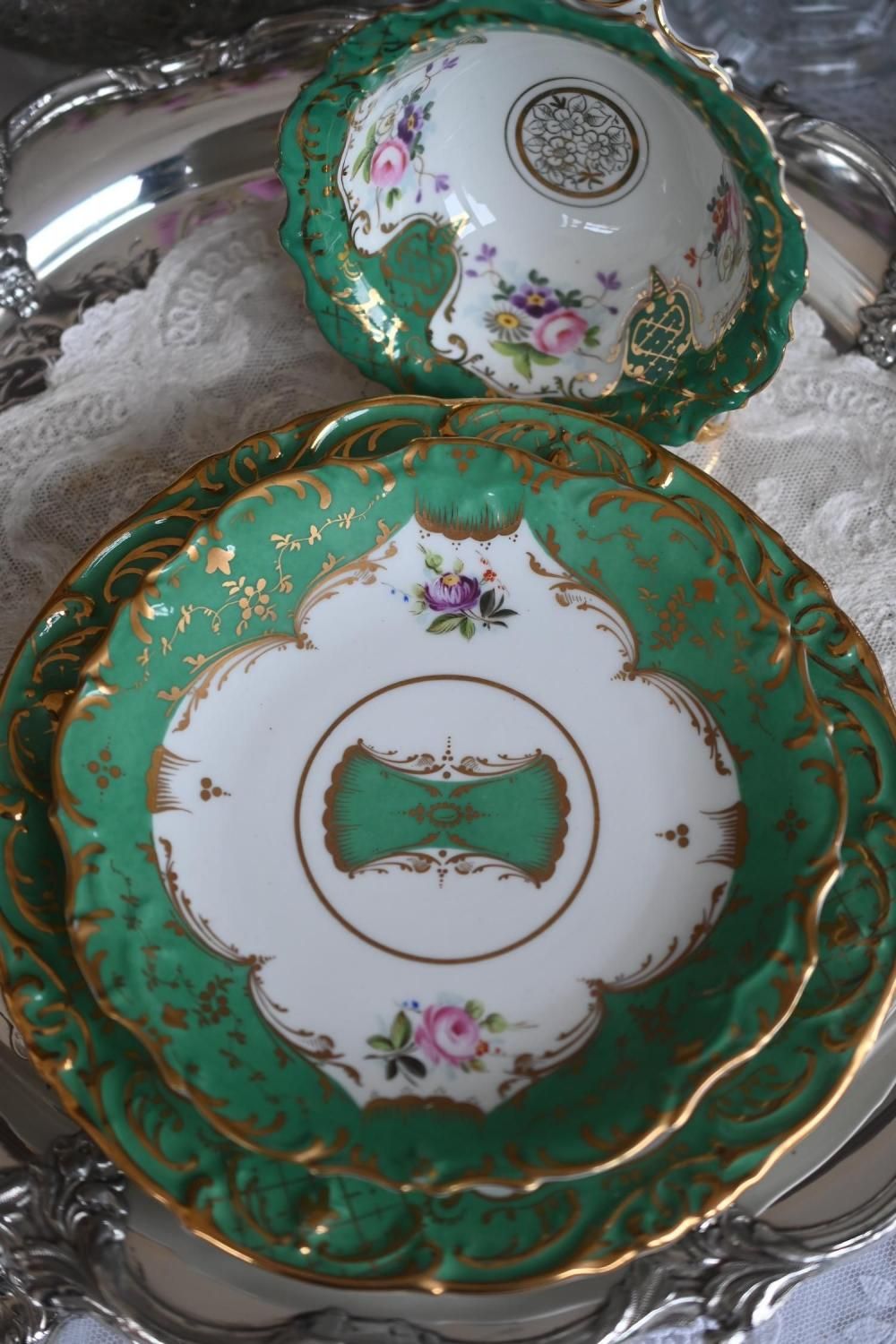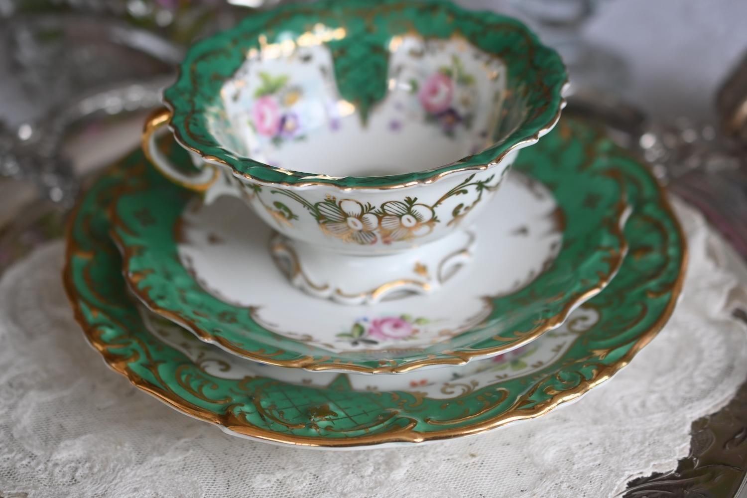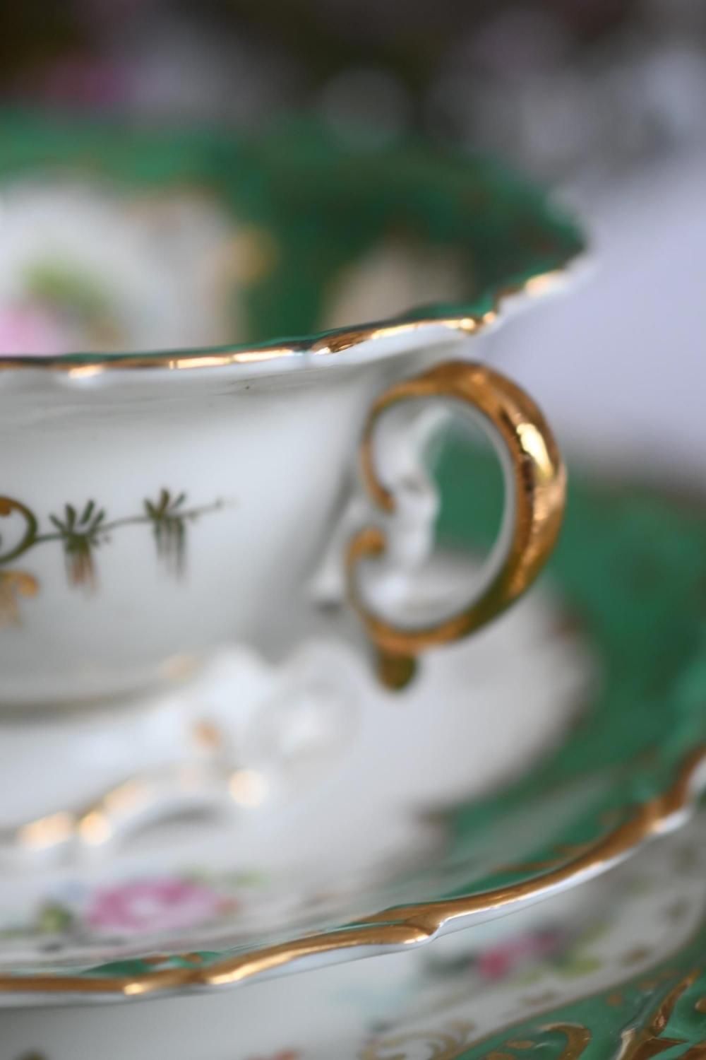 ポルトガルで1824年に創立したヴィスタ・アレグレのティーカップトリオになります。ほとんど見分けるのが難しいほど似ている絵柄ですが、ソーサーだけ、カップとプレートと違う絵柄になります。
