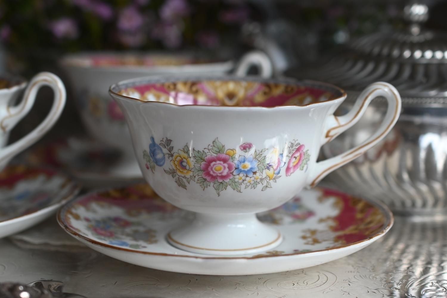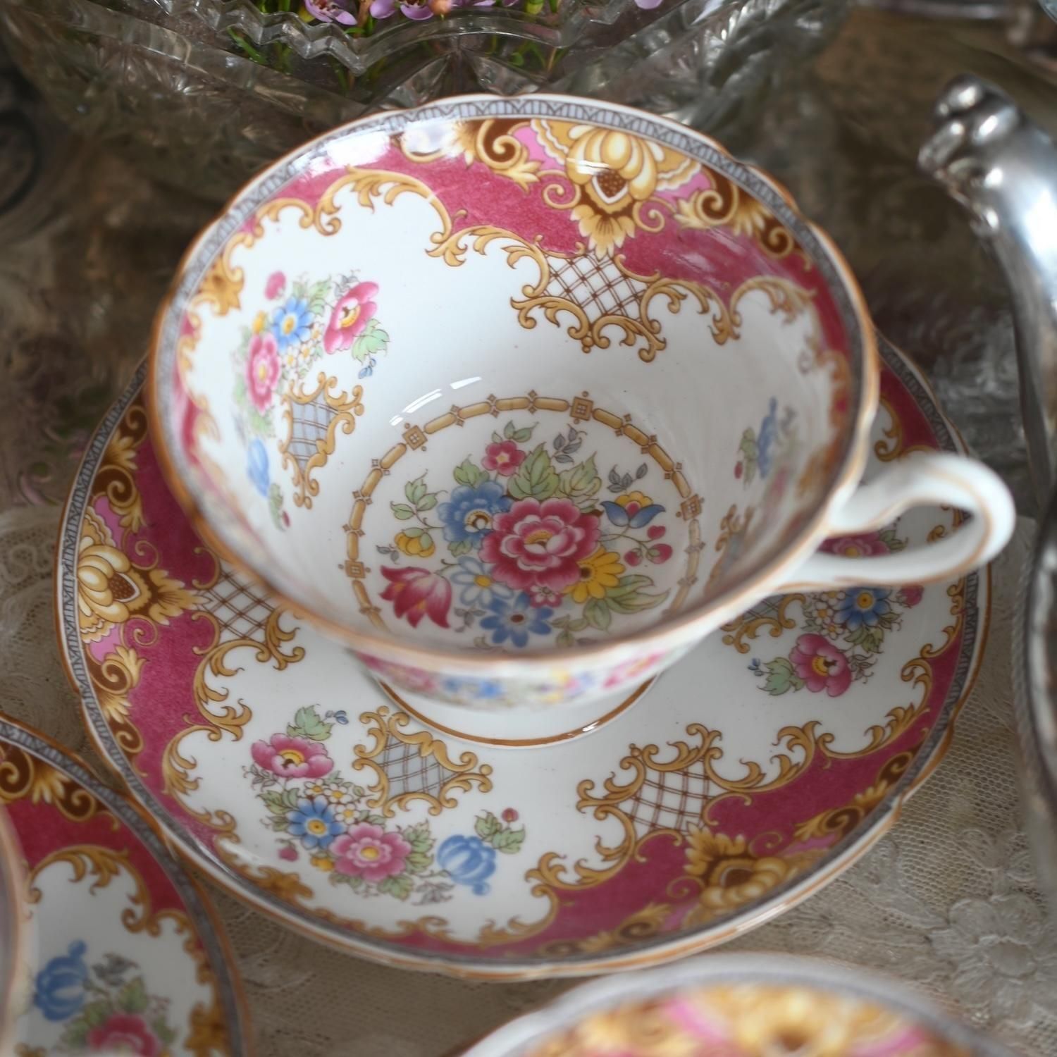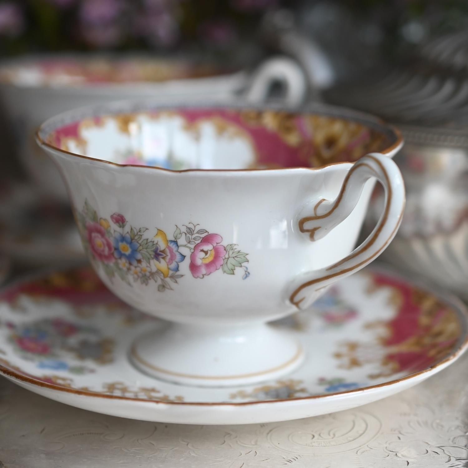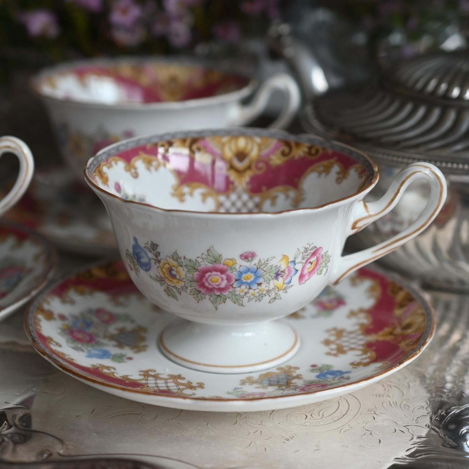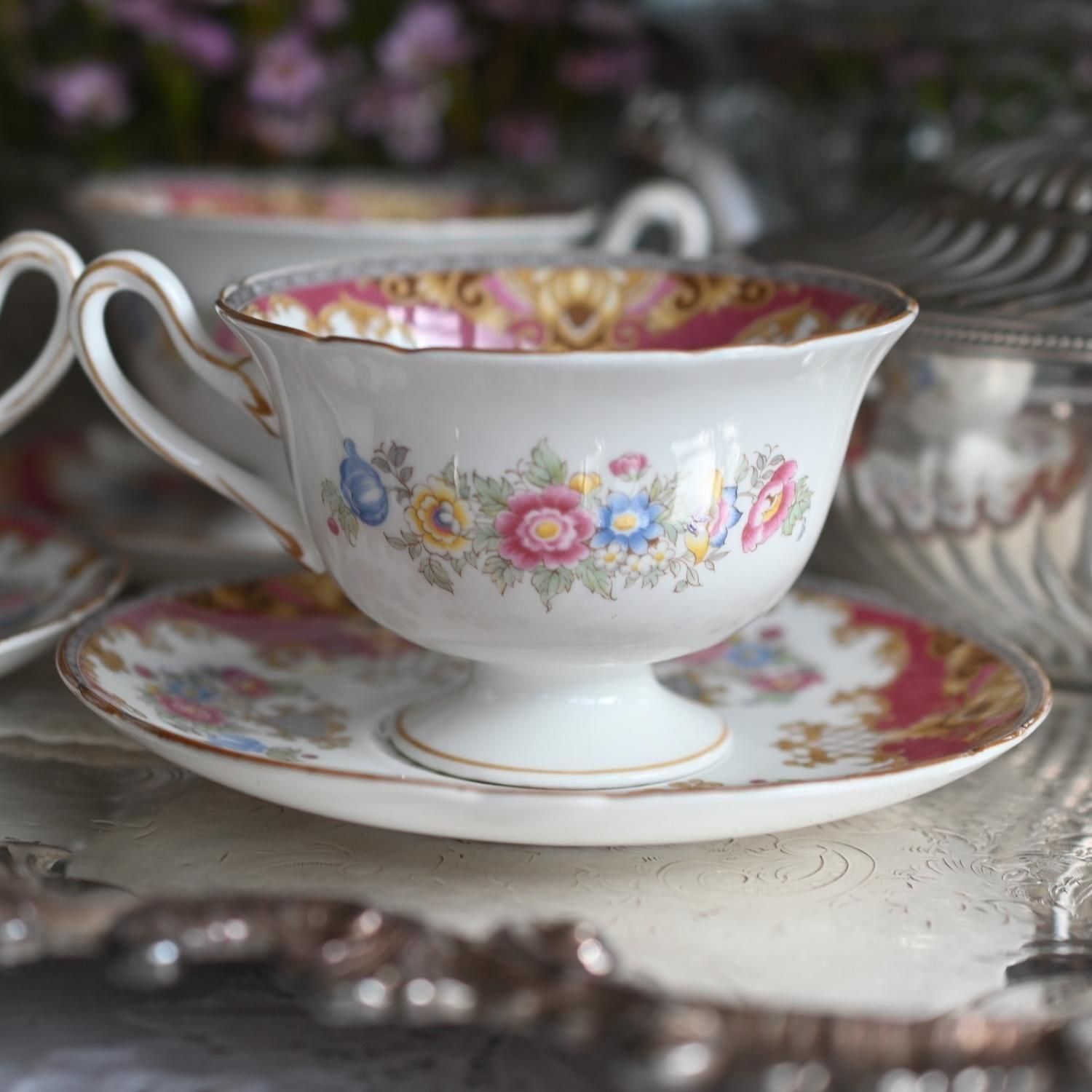 1960年代・シェリー・シェラトン・ラズベリー色のティーカップデュオ 単品 (送料込)
