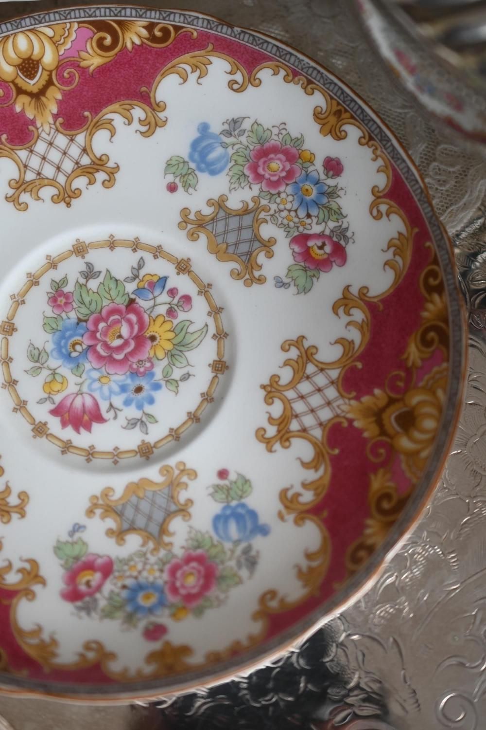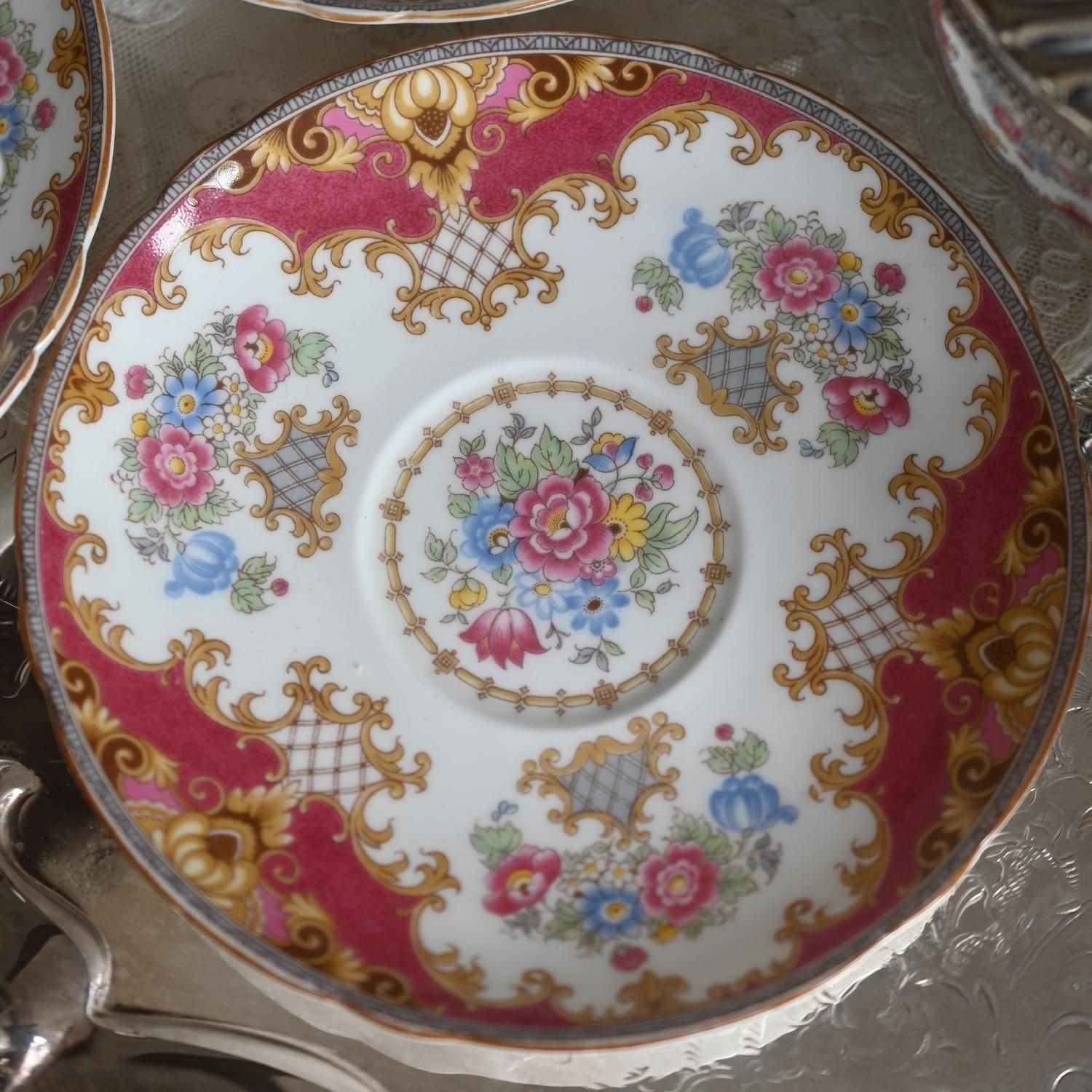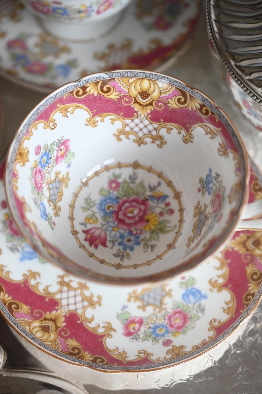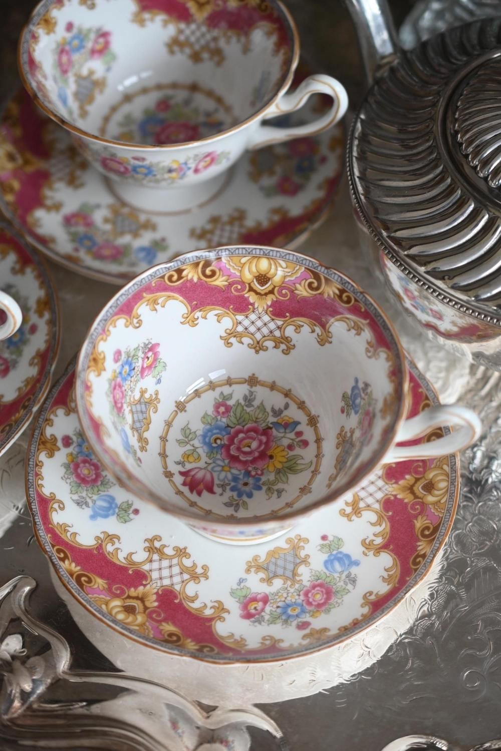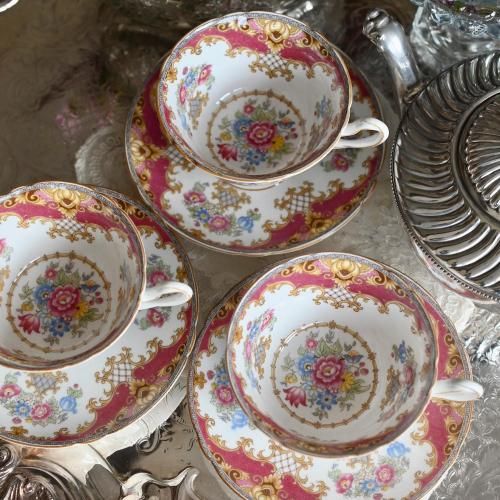 1960年代・シェリー・シェラトン・ラズベリー色のティーカップデュオ 単品 (送料込)