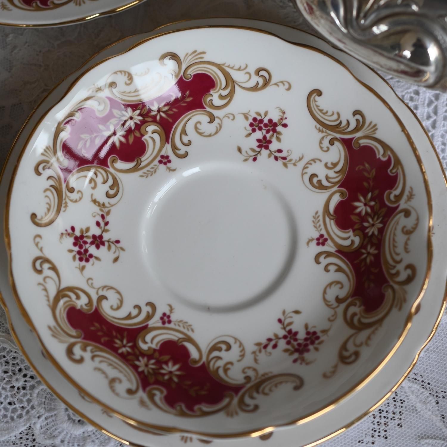 4客ともに似たような状態です。ソーサー、プレートに使用した事による小さなスクラッチマークがございますが、全体的に綺麗なお品です。状態の良いものからお出しします。