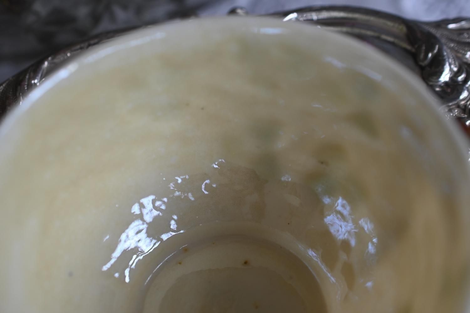 つやつやと輝く素地は、まるで貝殻のようです。輝く磁器は、ベリークが1863年に開発したバリアン磁器と呼ばれるもので、現在でも作り続けられています。ベリークは、1997年にエインズレイに売却されていますが、「ベリーク」の名前でバリアンチャイナは現在もなお作り続けられています。