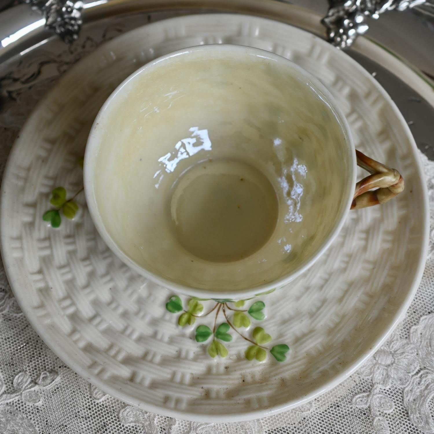 希少・ベリーク・ファーストブラックマーク・シャムロック・クローバーのティーカップ&ソーサー (送料込)