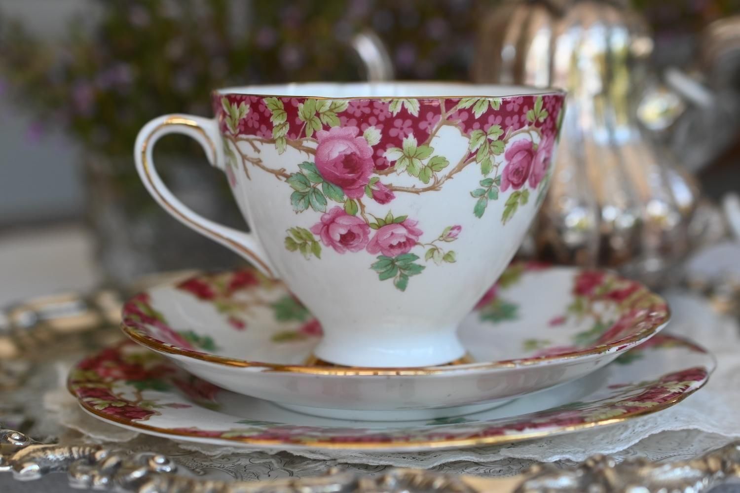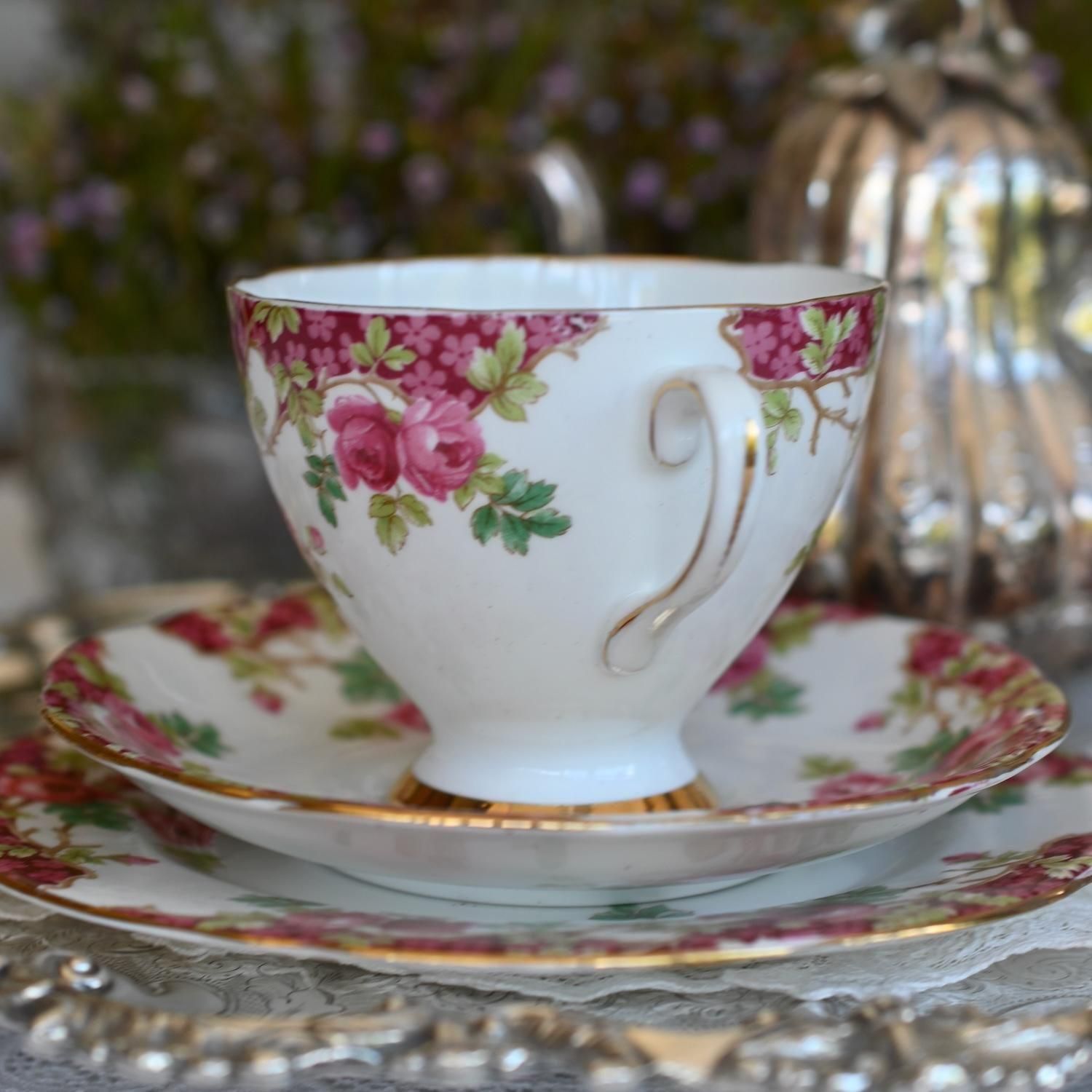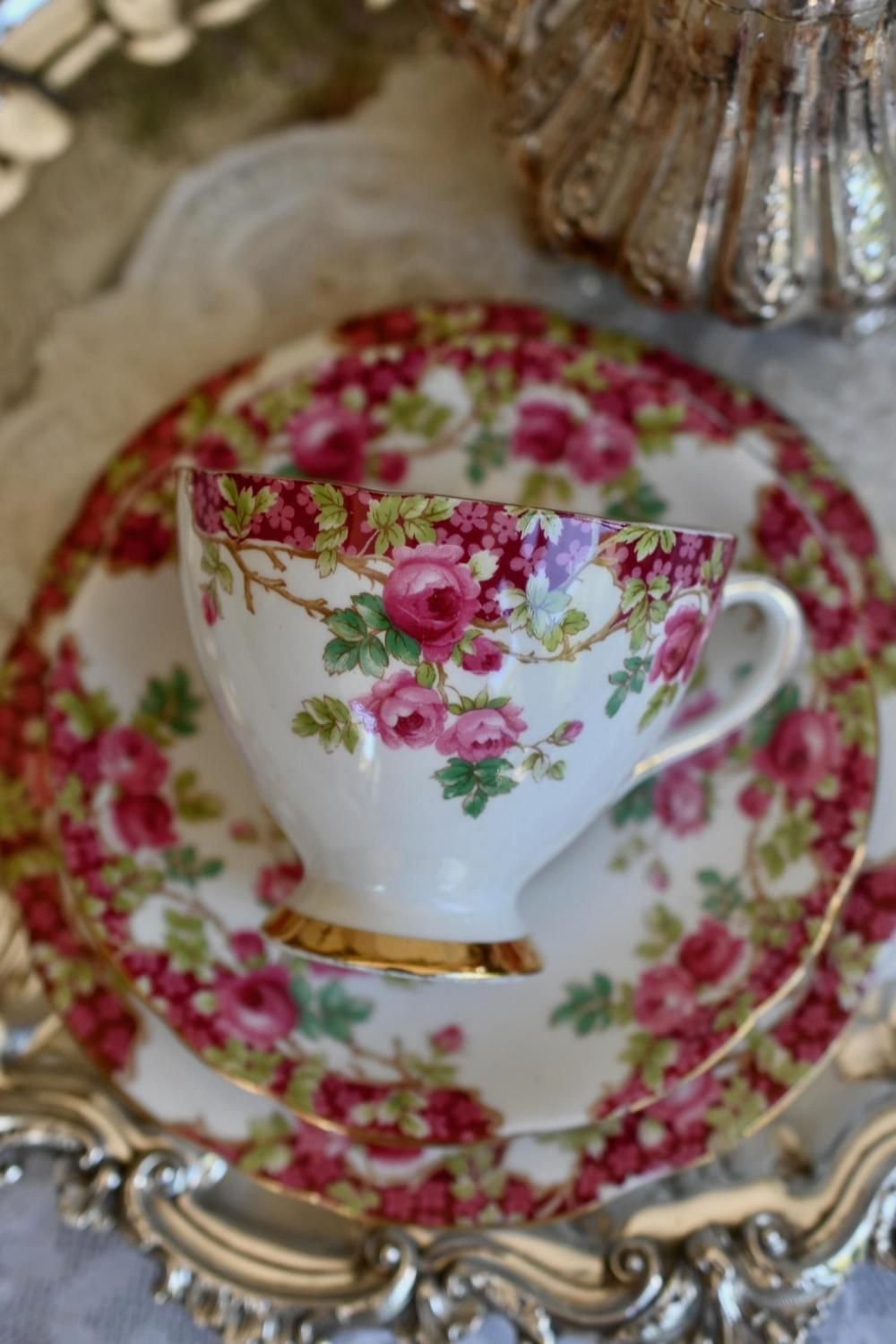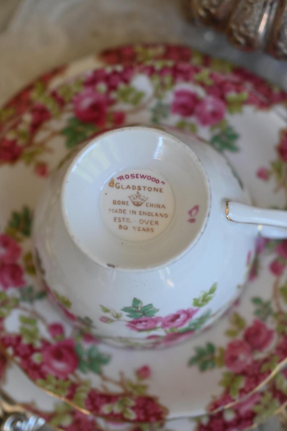 1930年代 ヴィンテージ・グラッドストーン・ローズウッド・ティーカップトリオ (送料込)