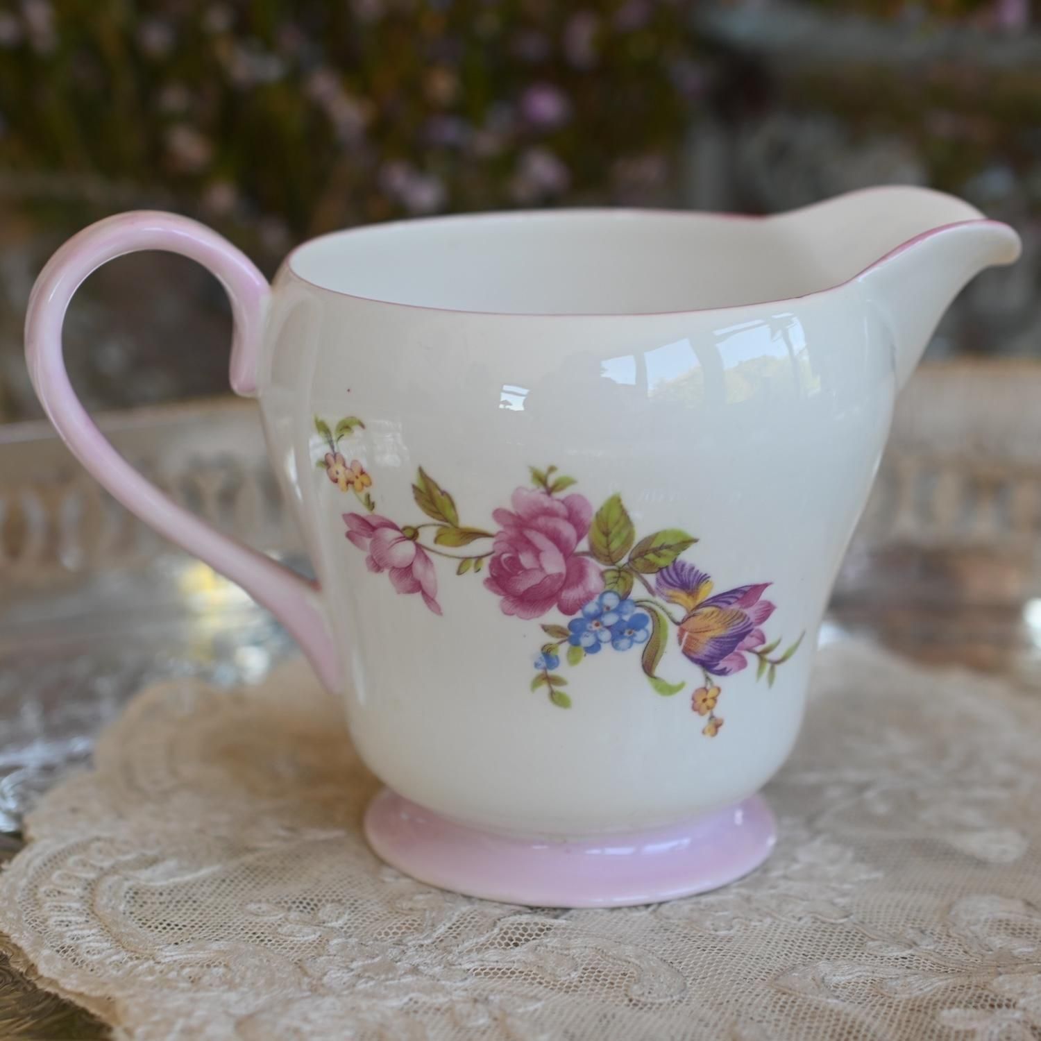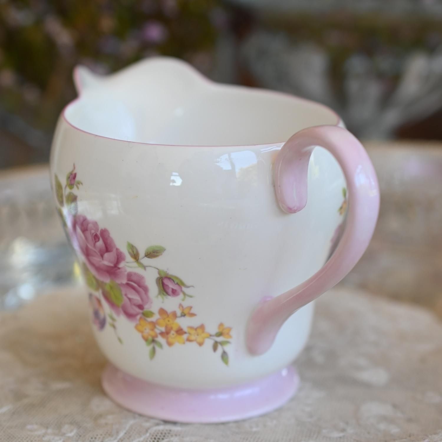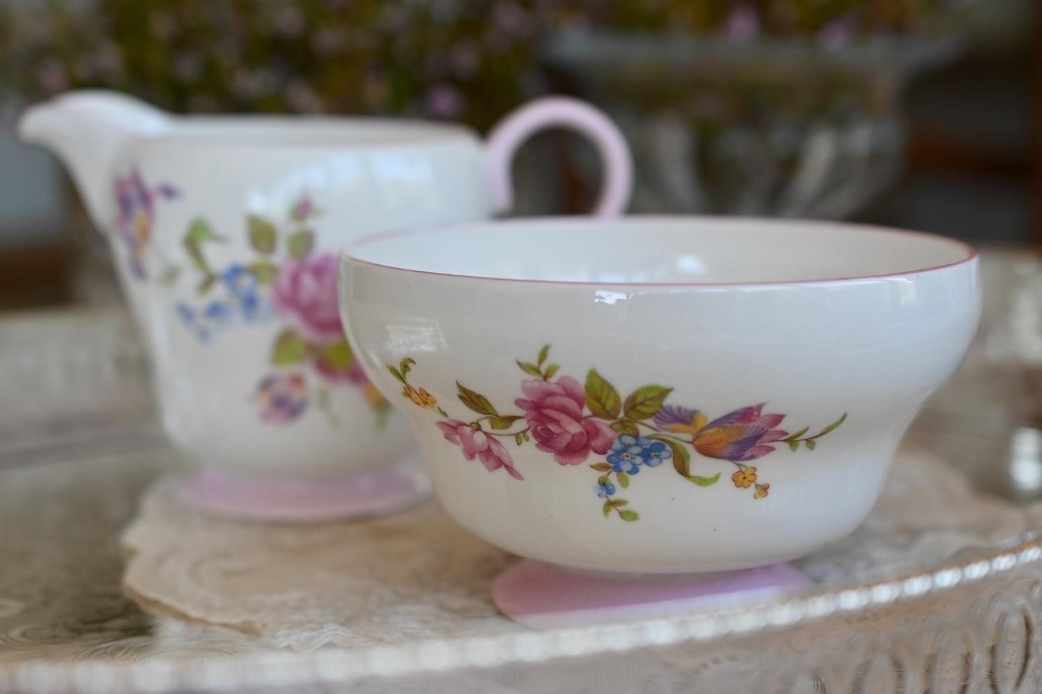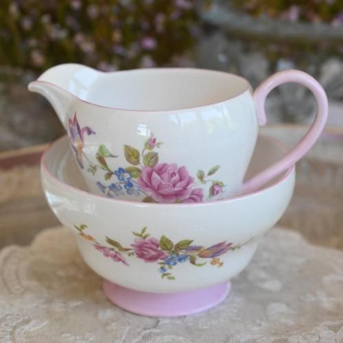 1938年から1966年の間に作られたシェリーのシュガーボウルとミルクジャグのセットです。