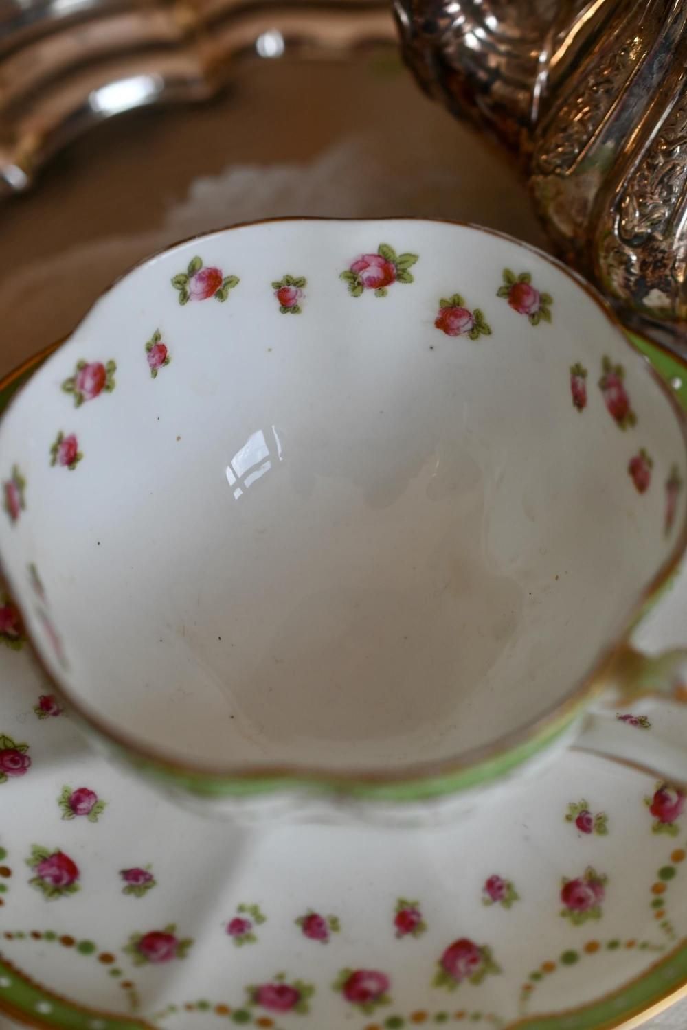 • <img class='new_mark_img1' src='https://img.shop-pro.jp/img/new/icons11.gif' style='border:none;display:inline;margin:0px;padding:0px;width:auto;' />1910年代 シェリー初期 ”ハドン” リバティ柄のようなバラ模様が可愛らしい小ぶりのティーカップトリオ (送料込)