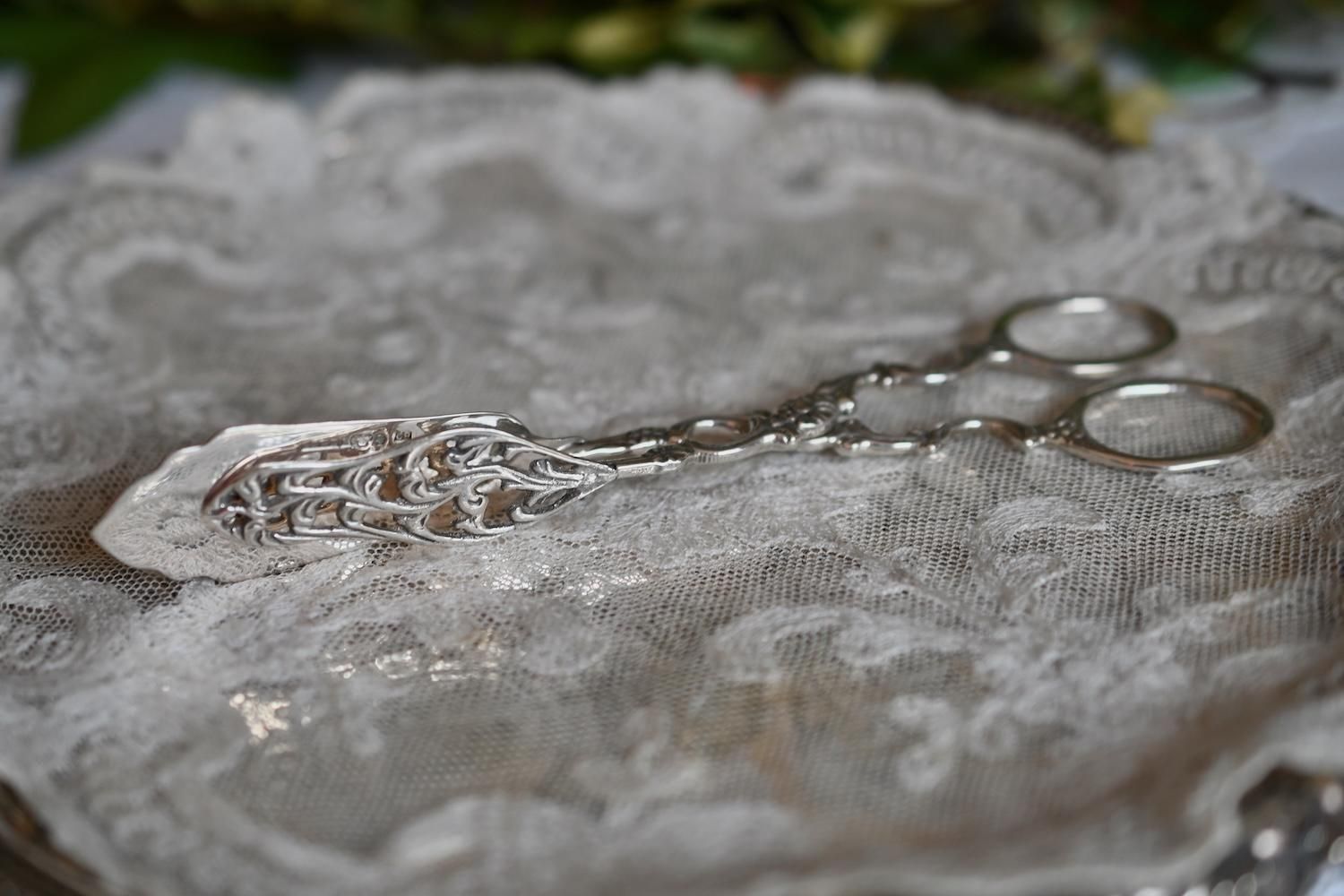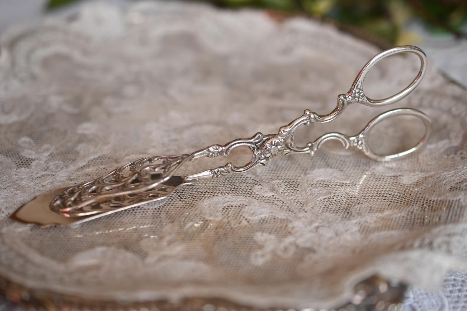 ハサミの部分に小さなお花の模様が付けられていて、小ぶりのトングは、お菓子の横に添えるとお菓子の可愛らしさも引き立ちます。