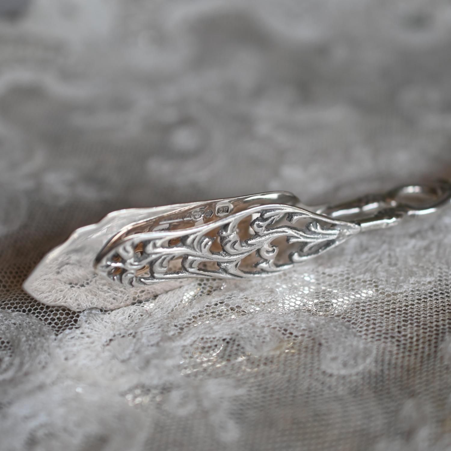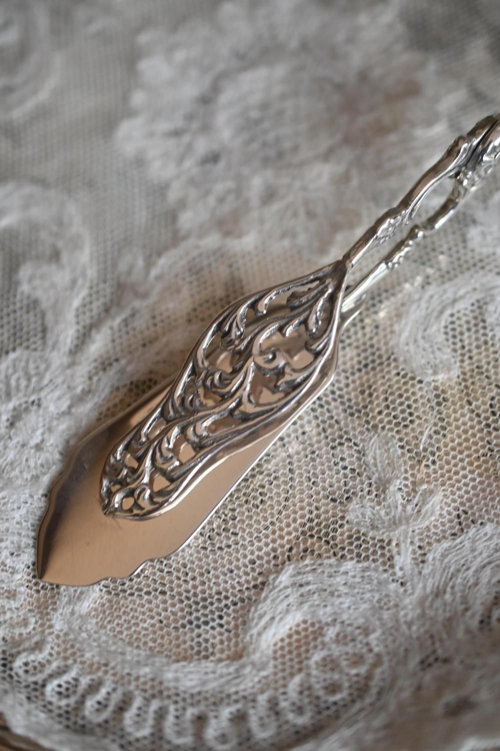 1950年代 スウェーデン製シルバー800 葉がモチーフになった透かし細工の小ぶりのケーキトング (送料込)