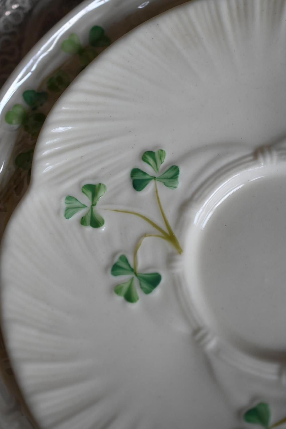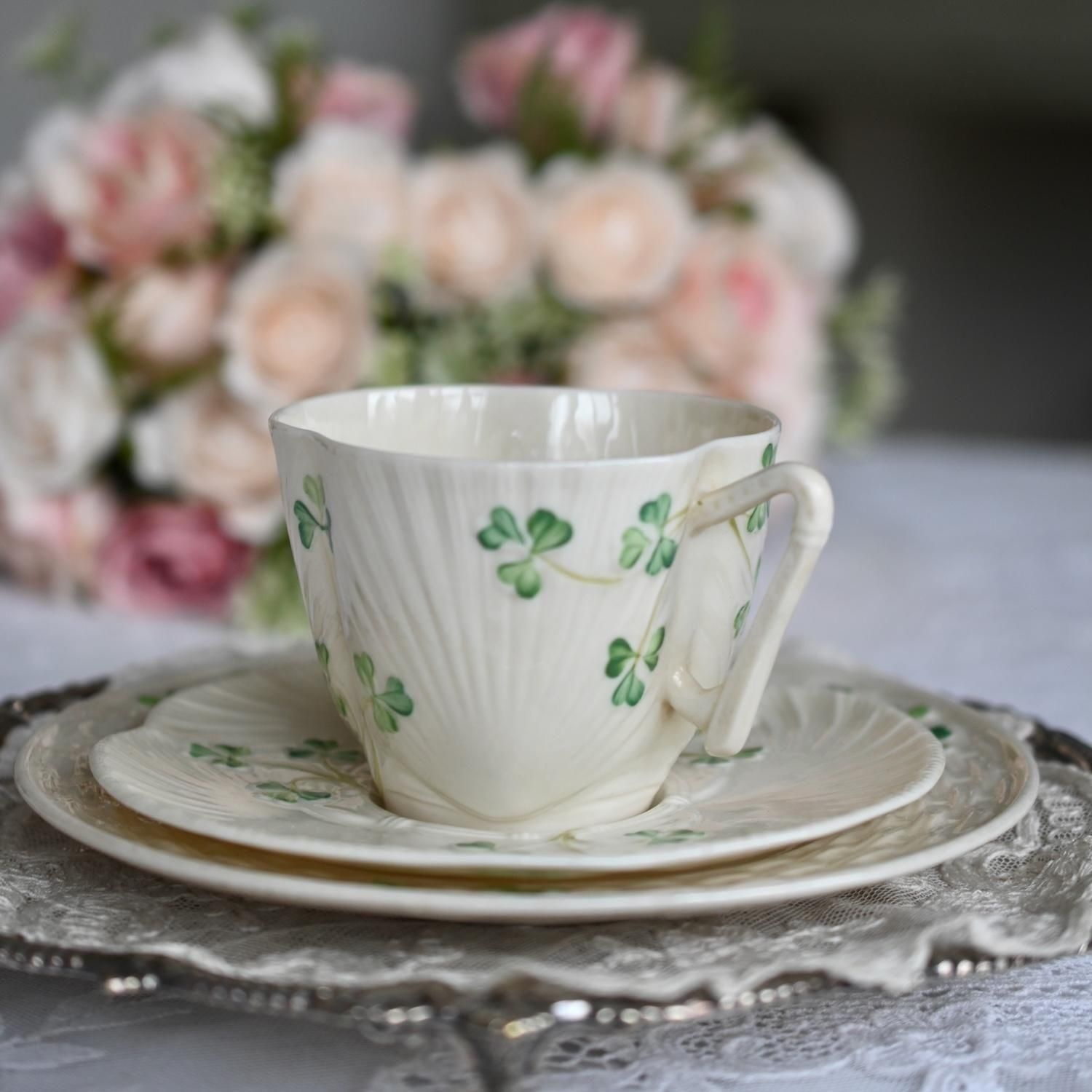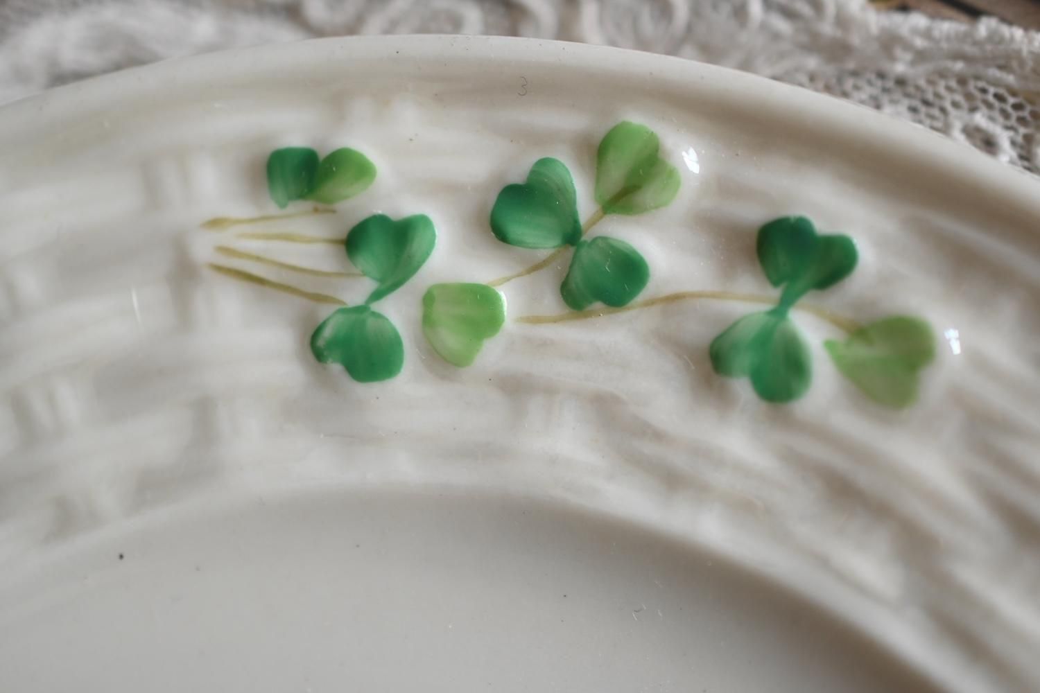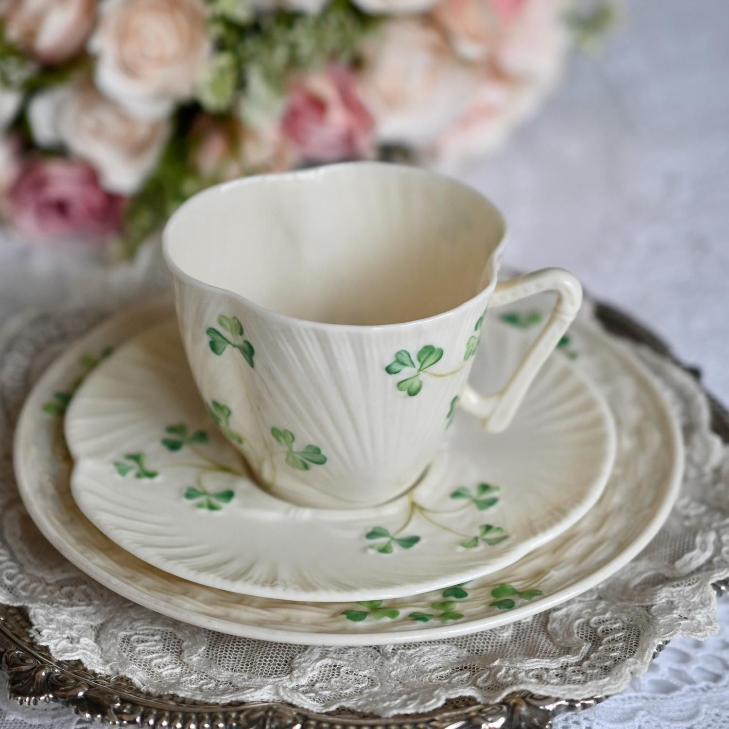 1960年代 ベリーク シャムロックのカップ&ソーサーとバスケット模様のケーキプレートのトリオ(送料込)
