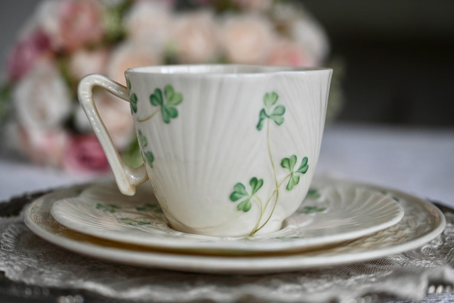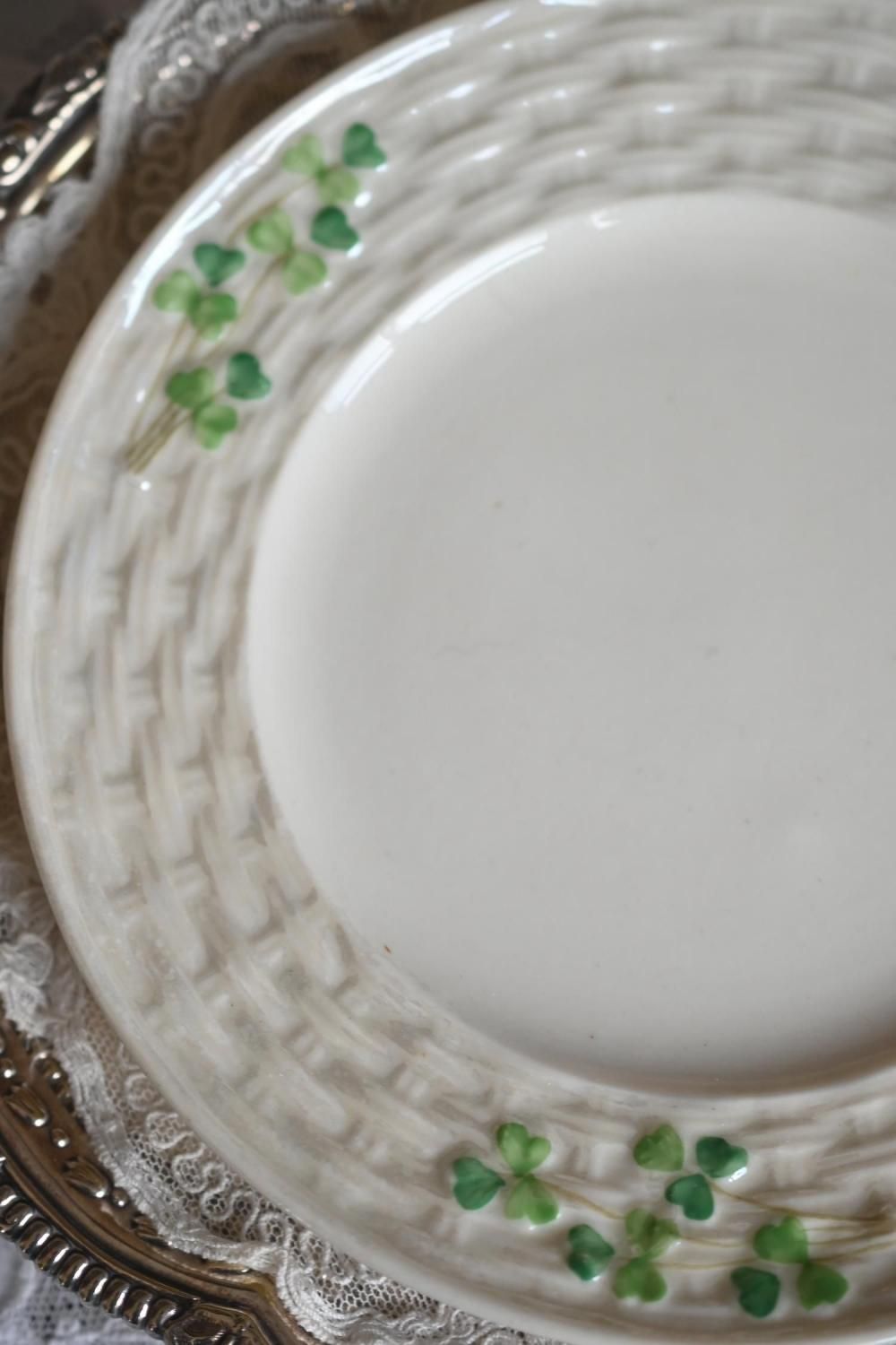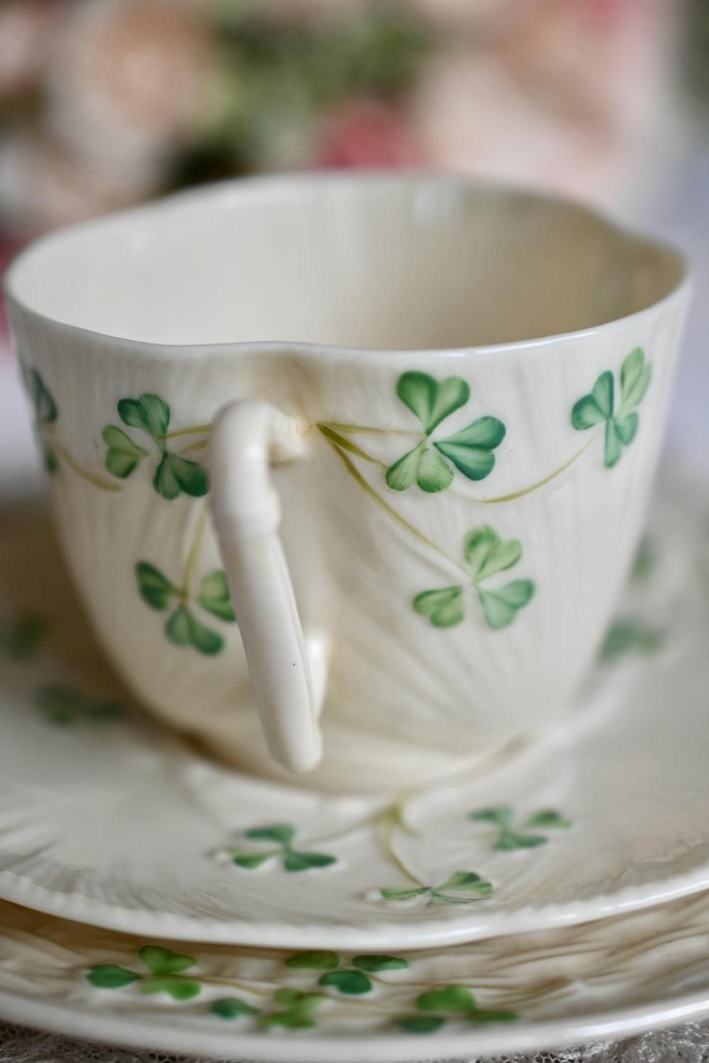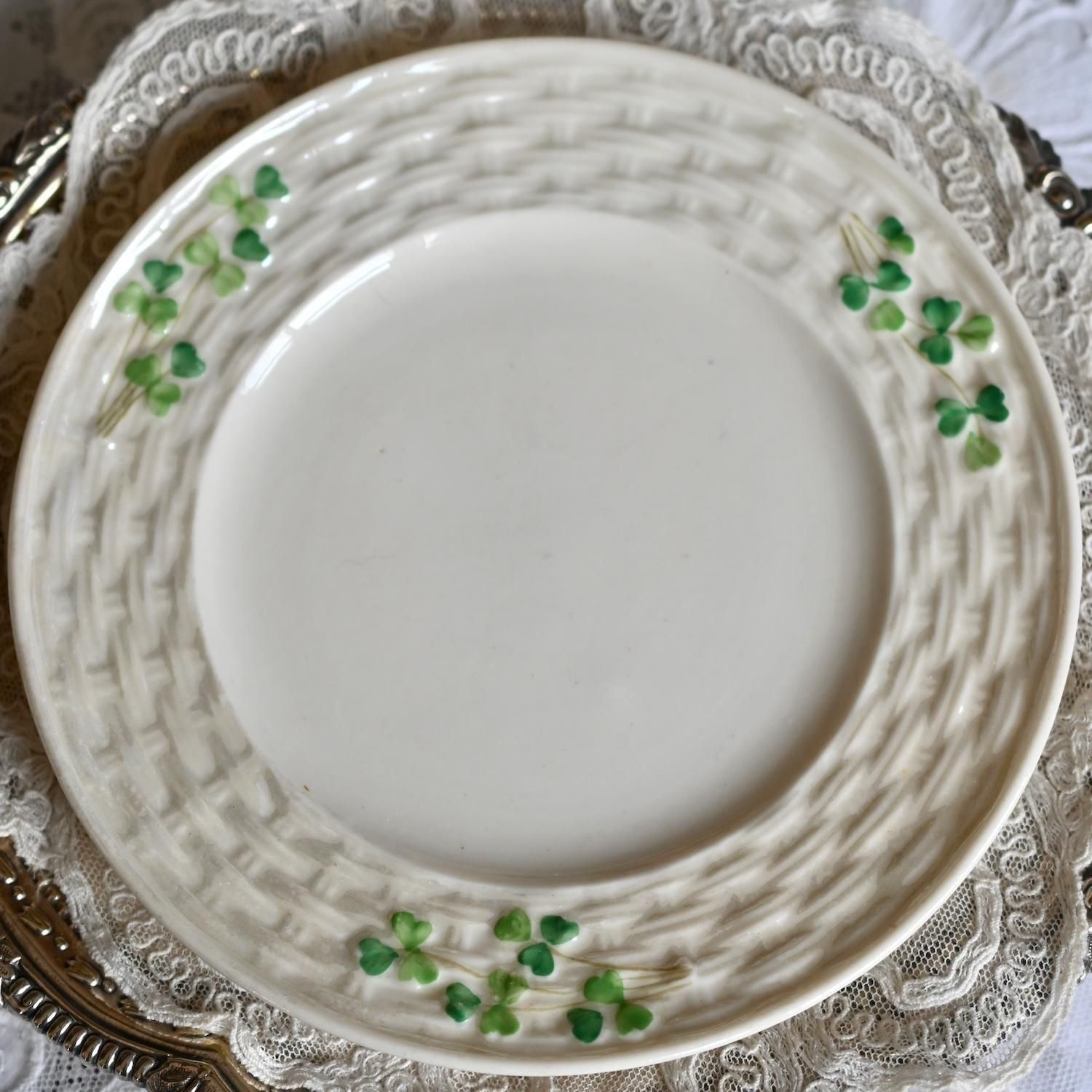 1960年代 ベリーク シャムロックのカップ&ソーサーとバスケット模様のケーキプレートのトリオ(送料込)