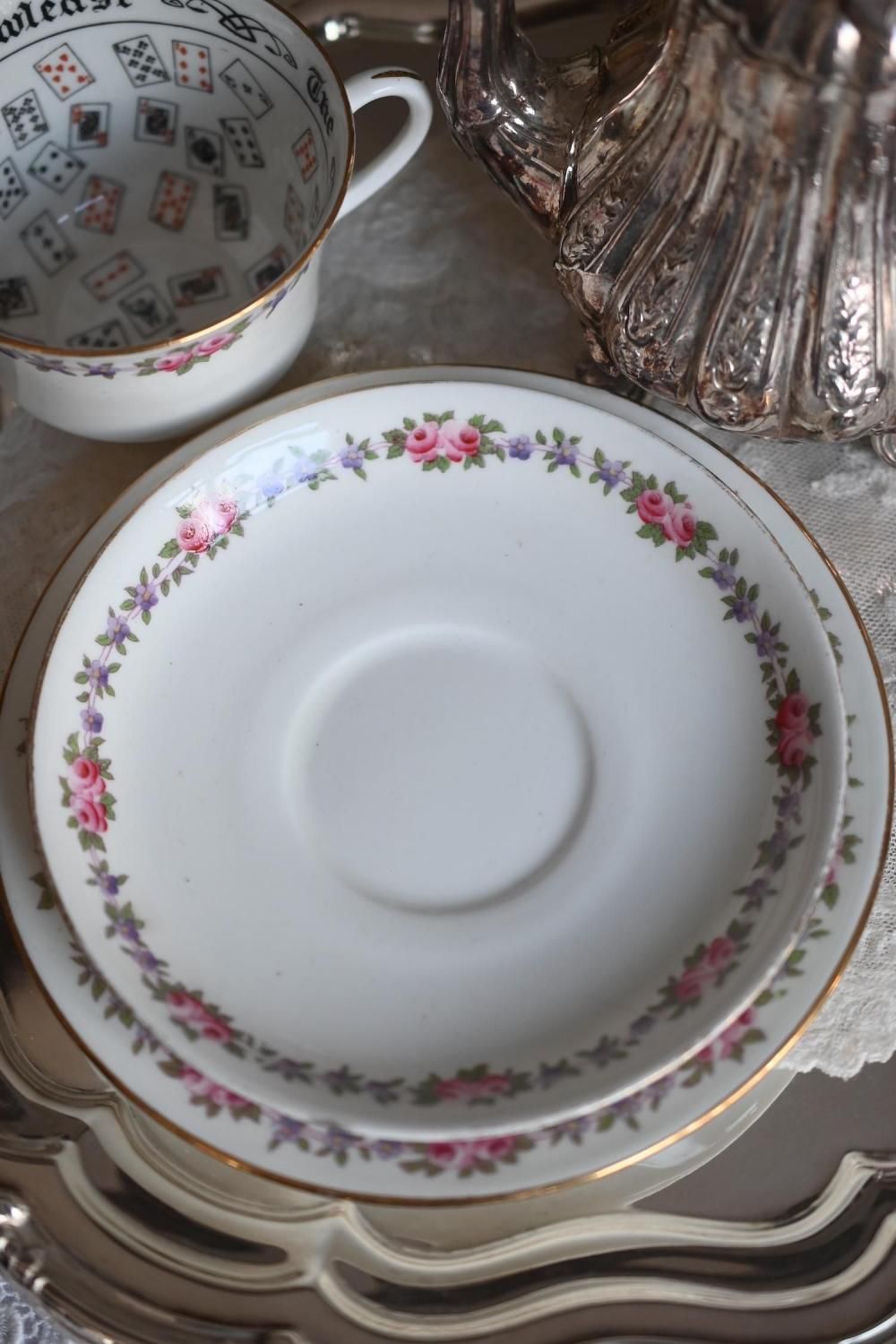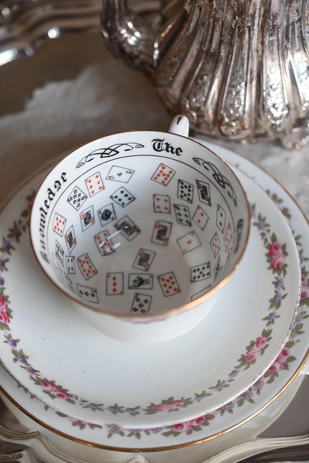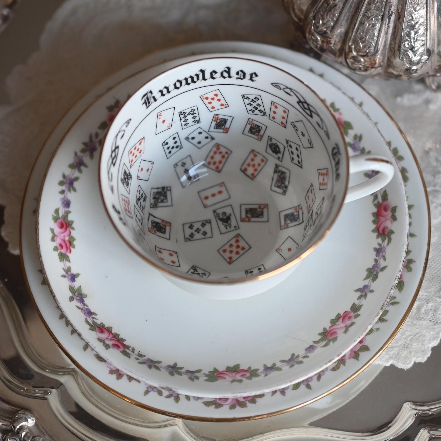 通常、フォーチュンテリングカップはカップ&ソーサーのことがほとんどなのですが、今回は、ケーキ皿のついたトリオのお品となります。