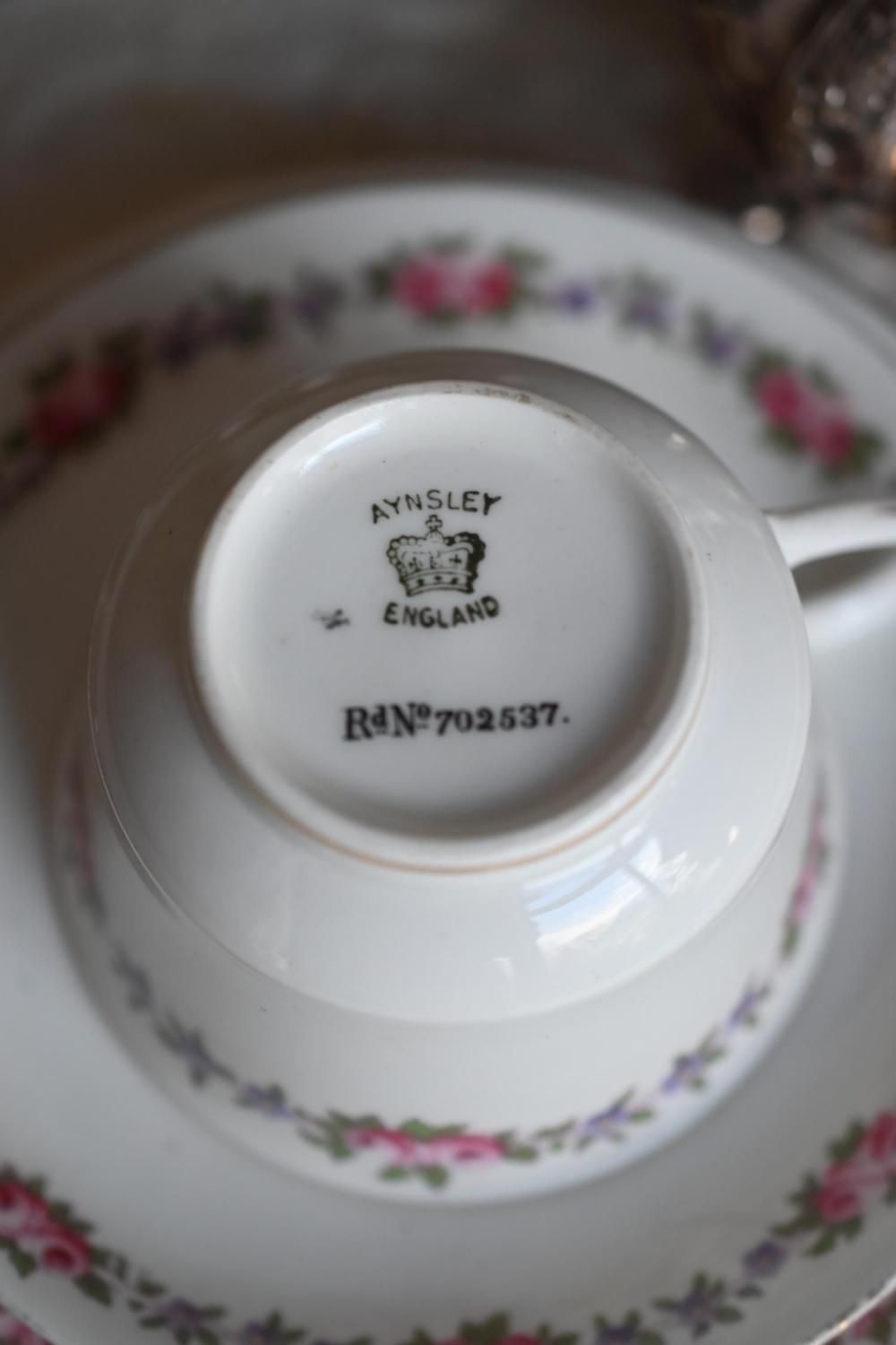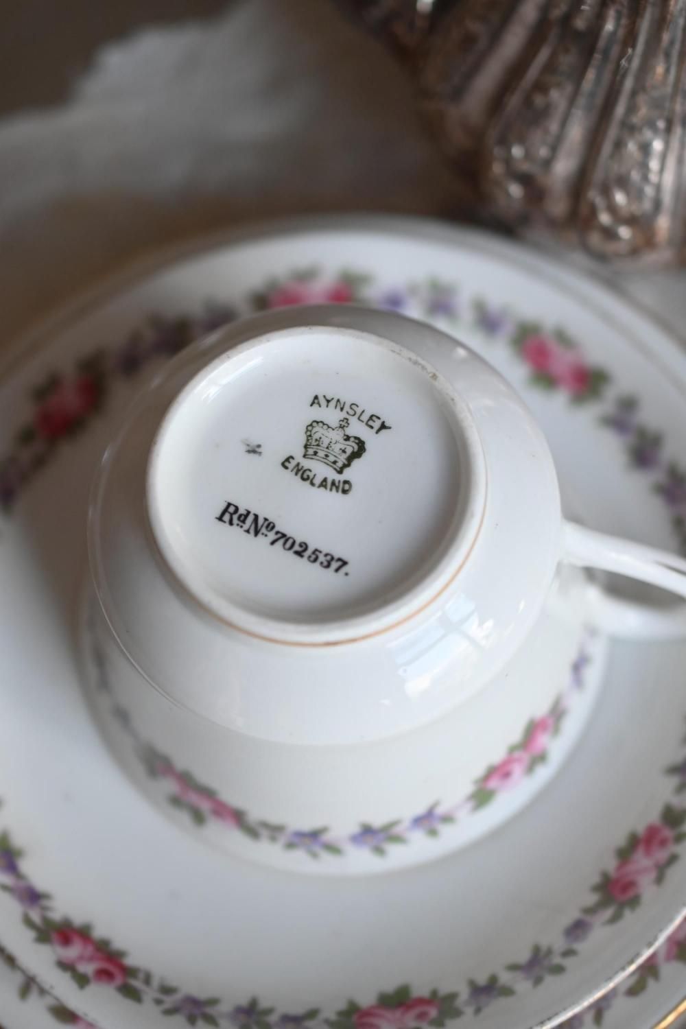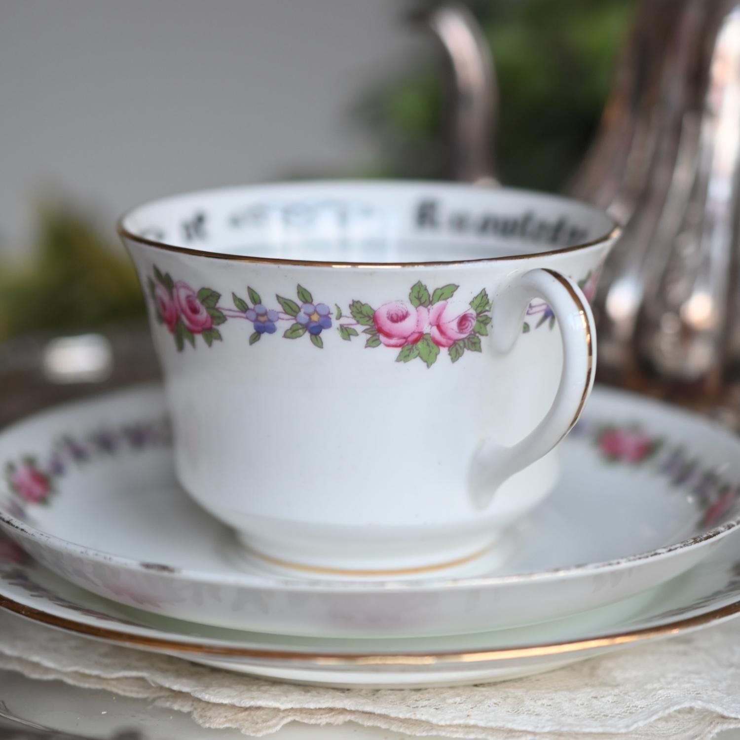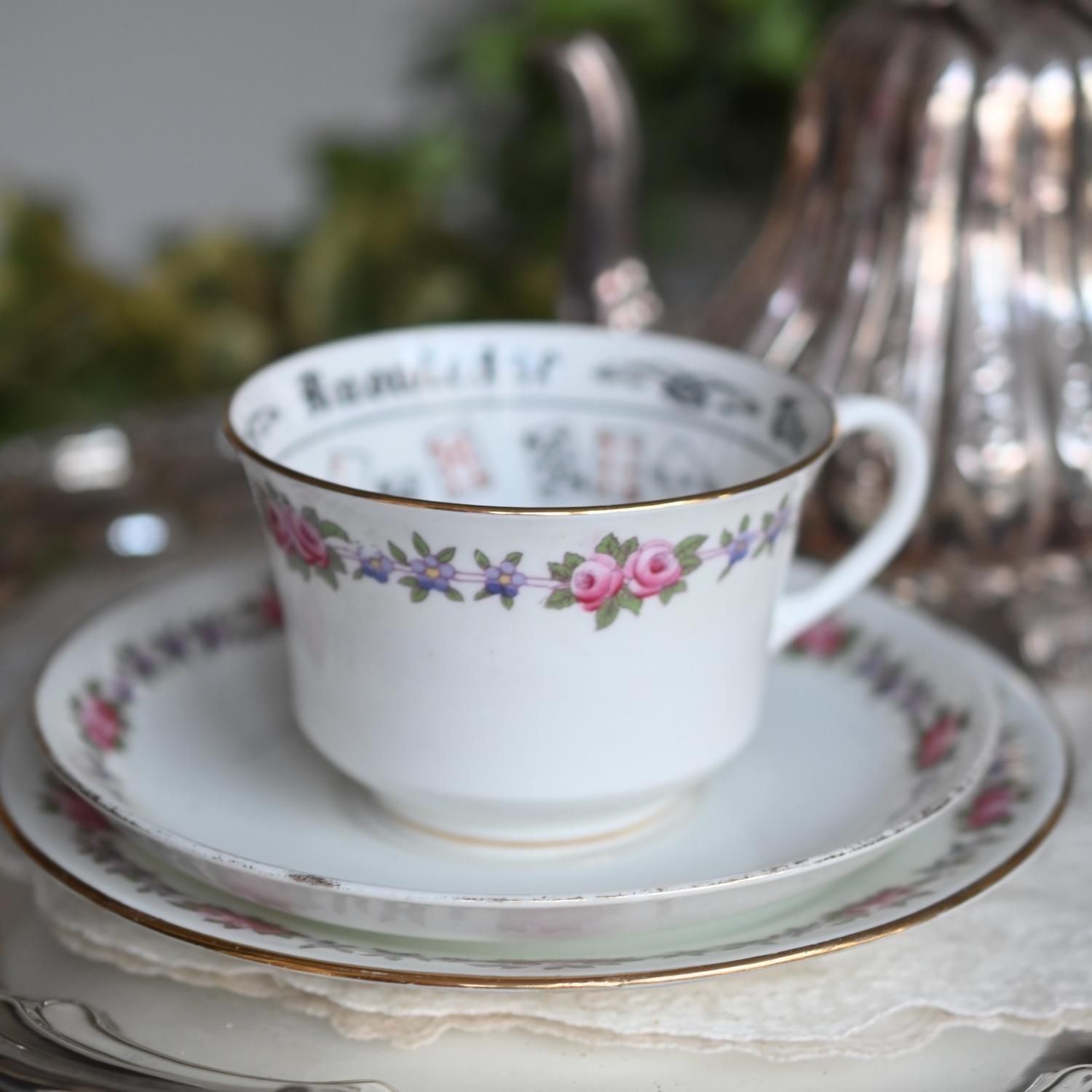 1920年代 エインズレイ ピンクのバラの模様 珍しいフォーチュンテリングカップのトリオ (送料込)