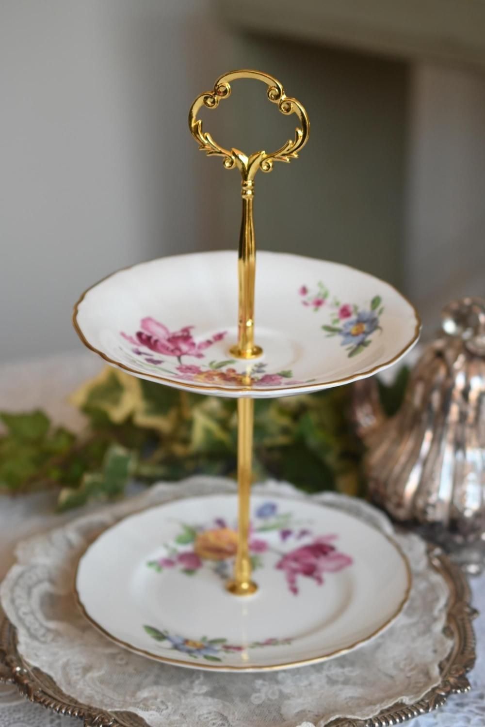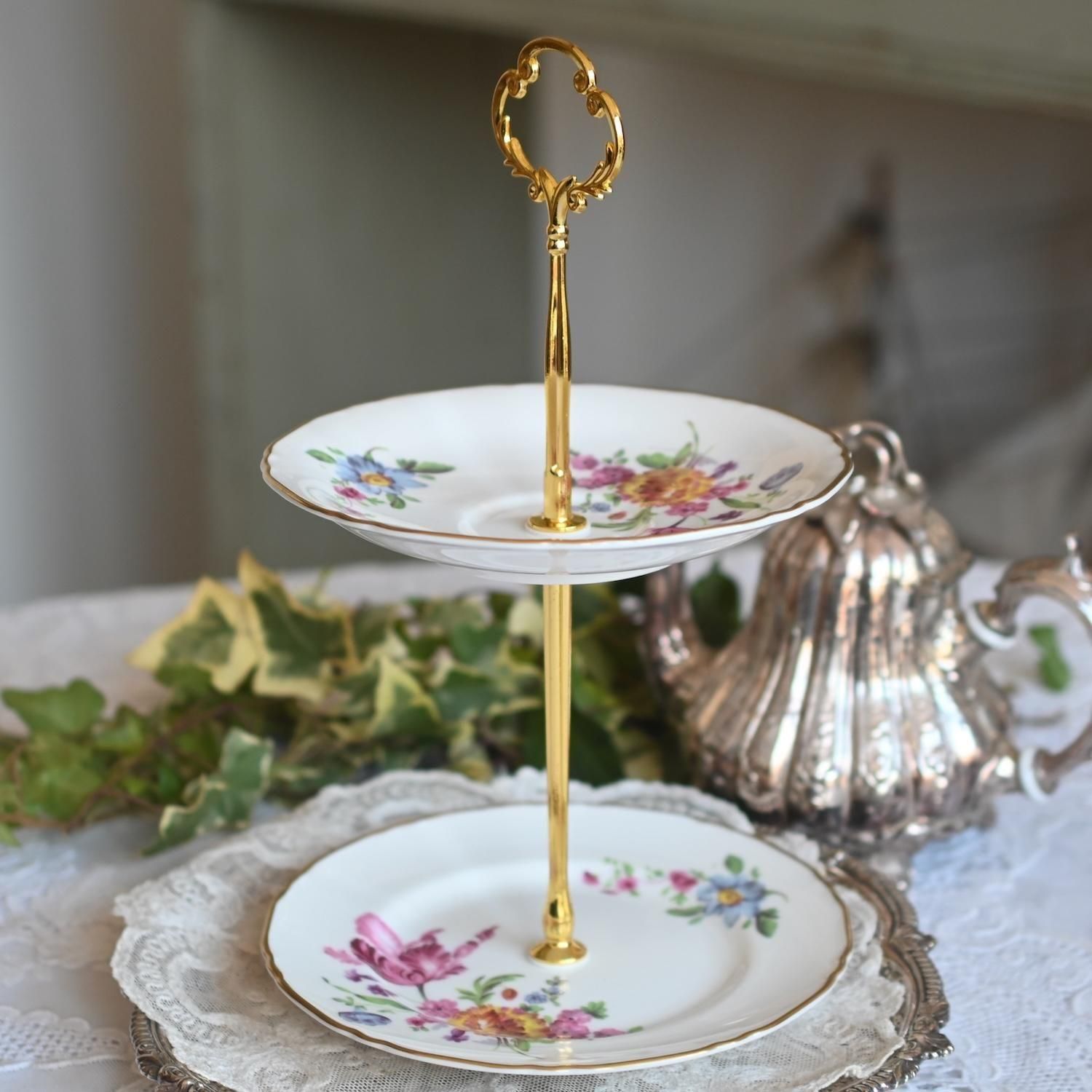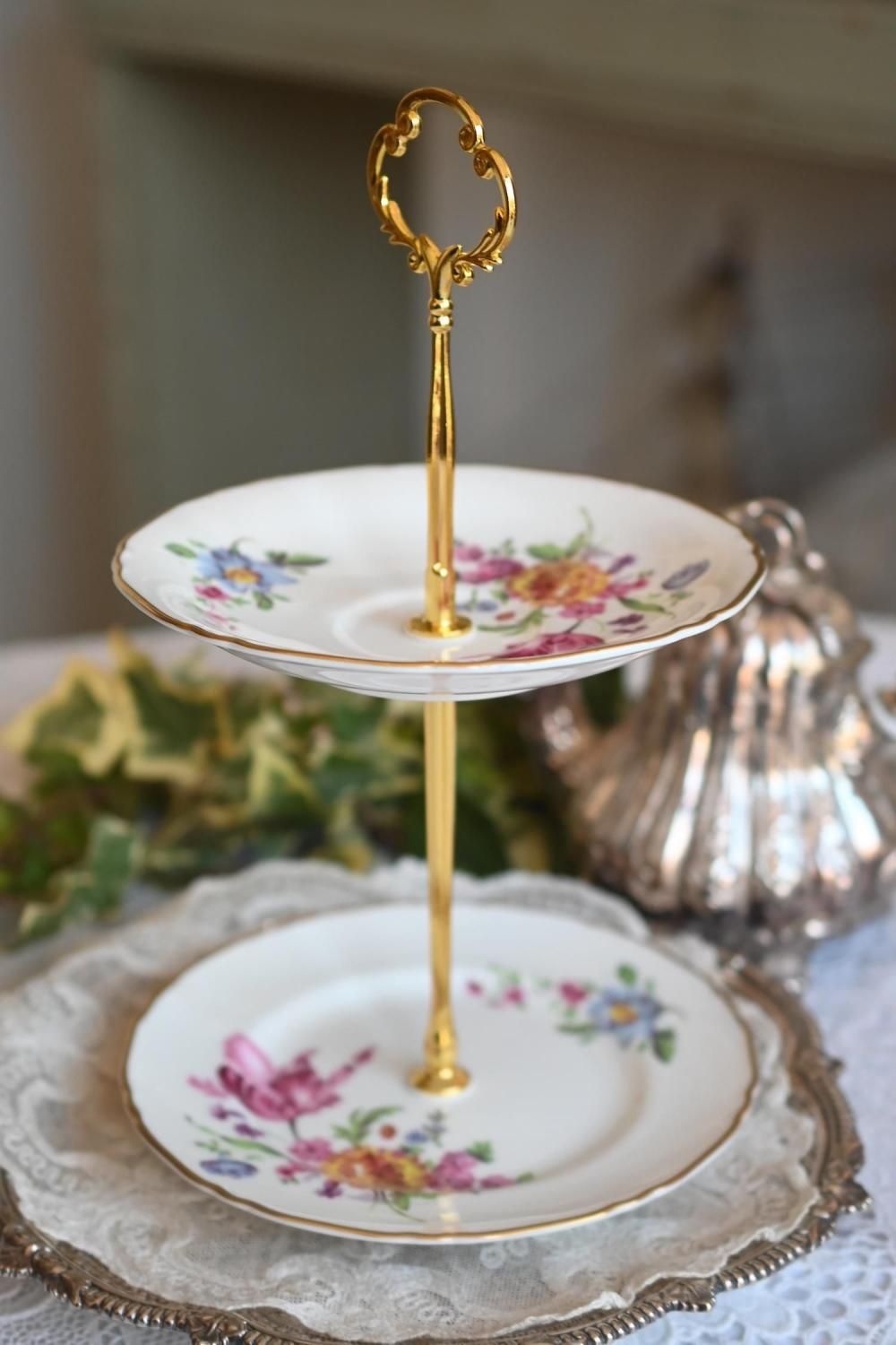 小ぶりですが、背の高めの2段スタンドです。お家でのアフタヌーンティーで大活躍してくれそうです。