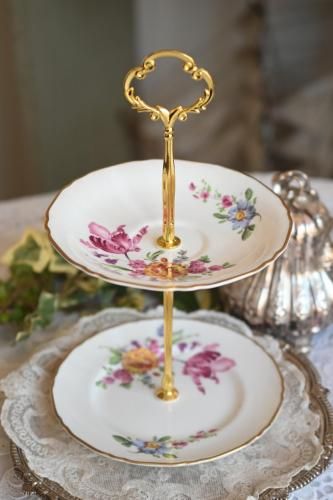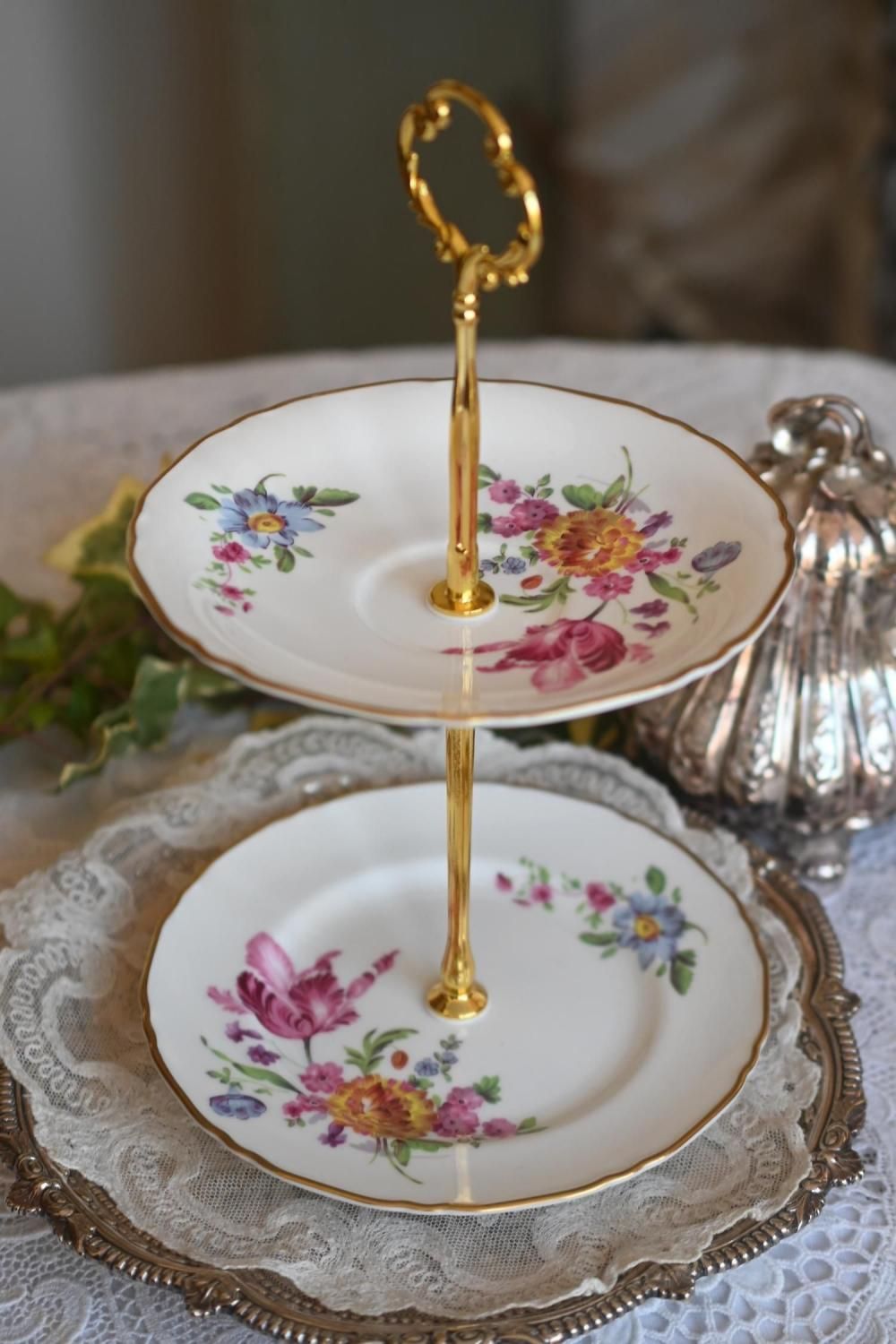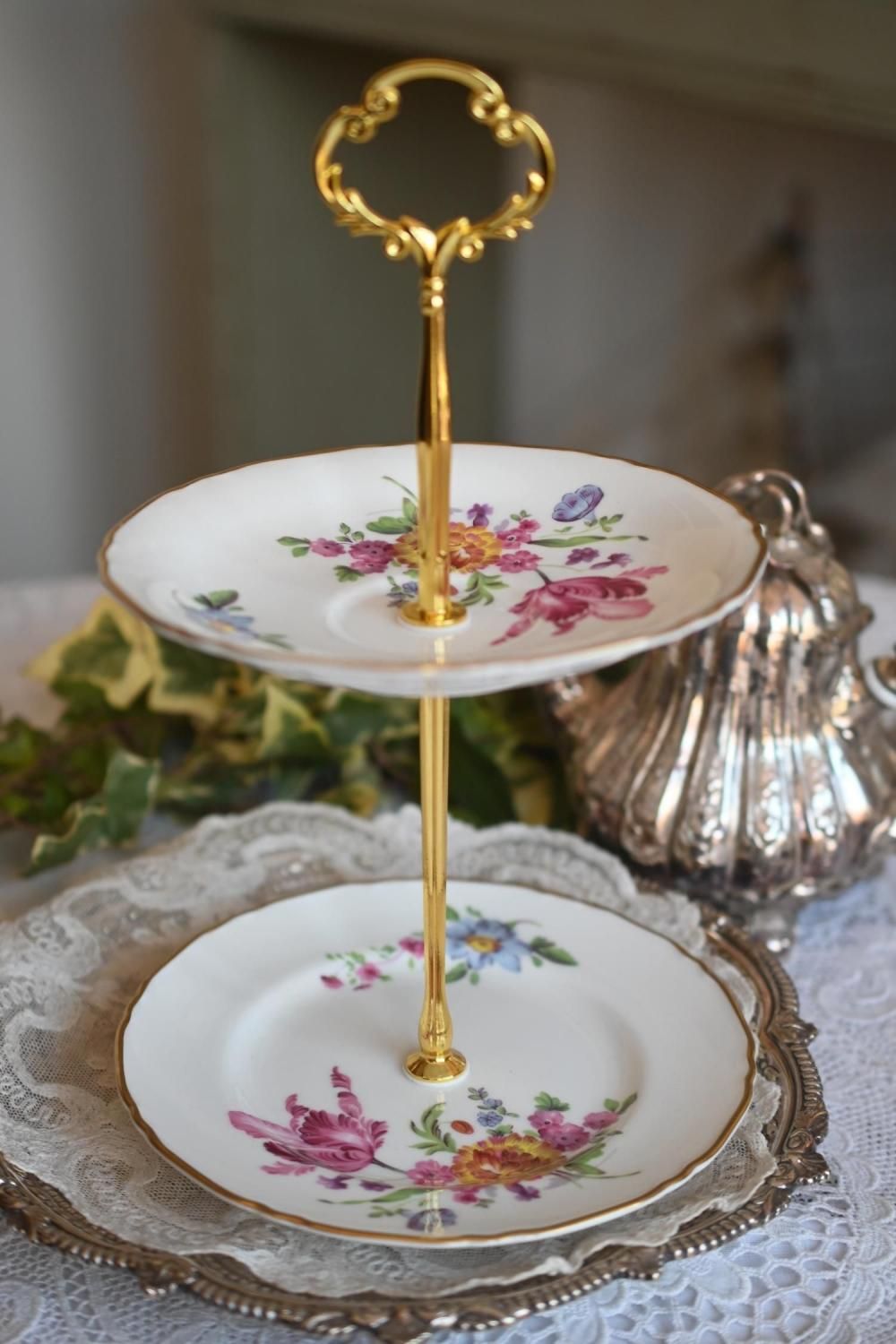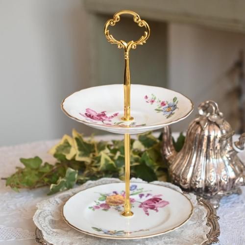 小ぶりですが、背の高めの2段スタンドです。お家でのアフタヌーンティーで大活躍してくれそうです。